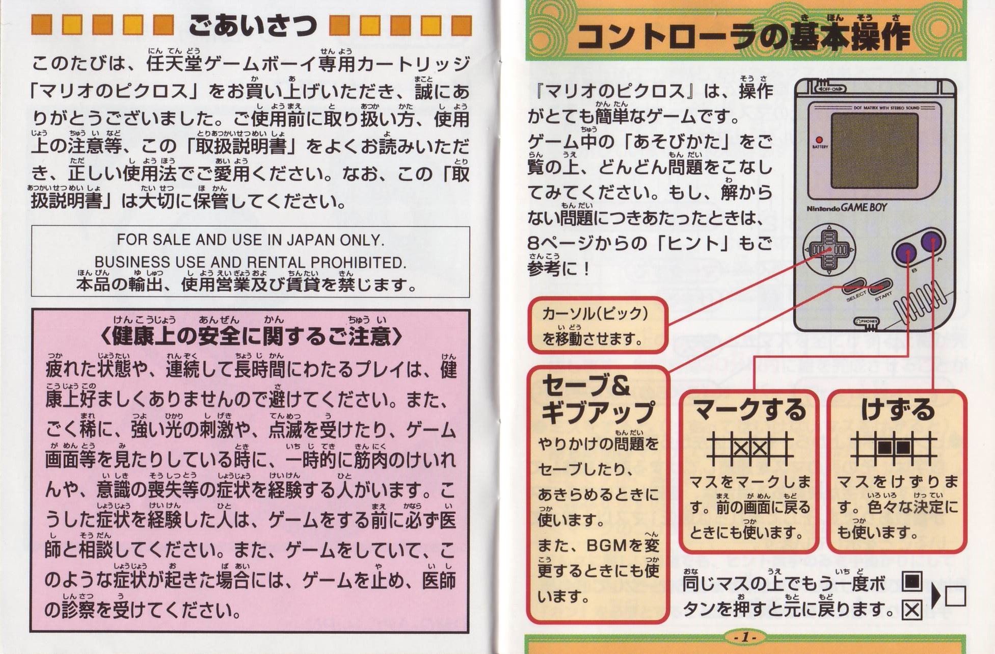 HOME > マリオのピクロス攻略TOP > 取扱説明書