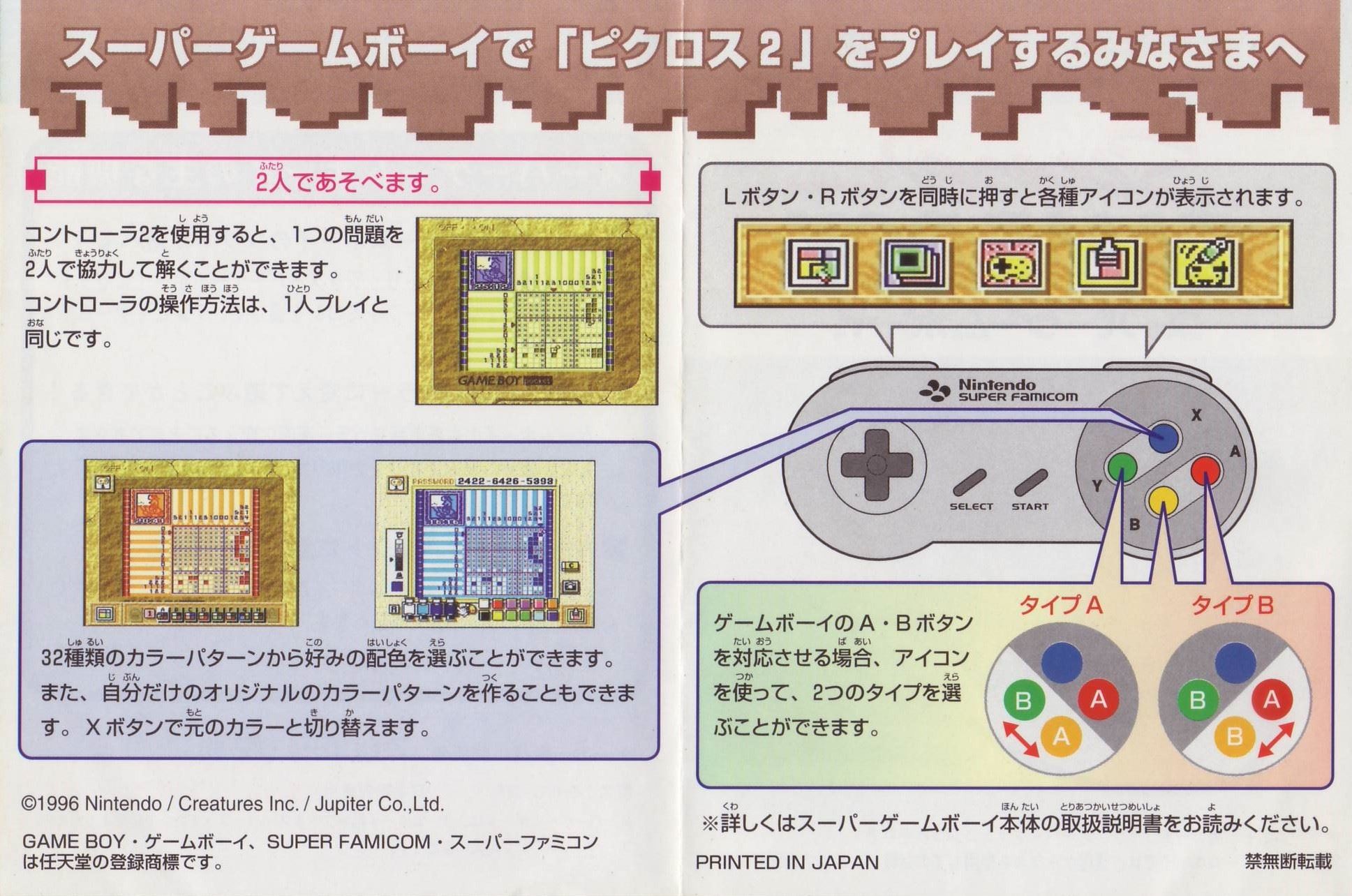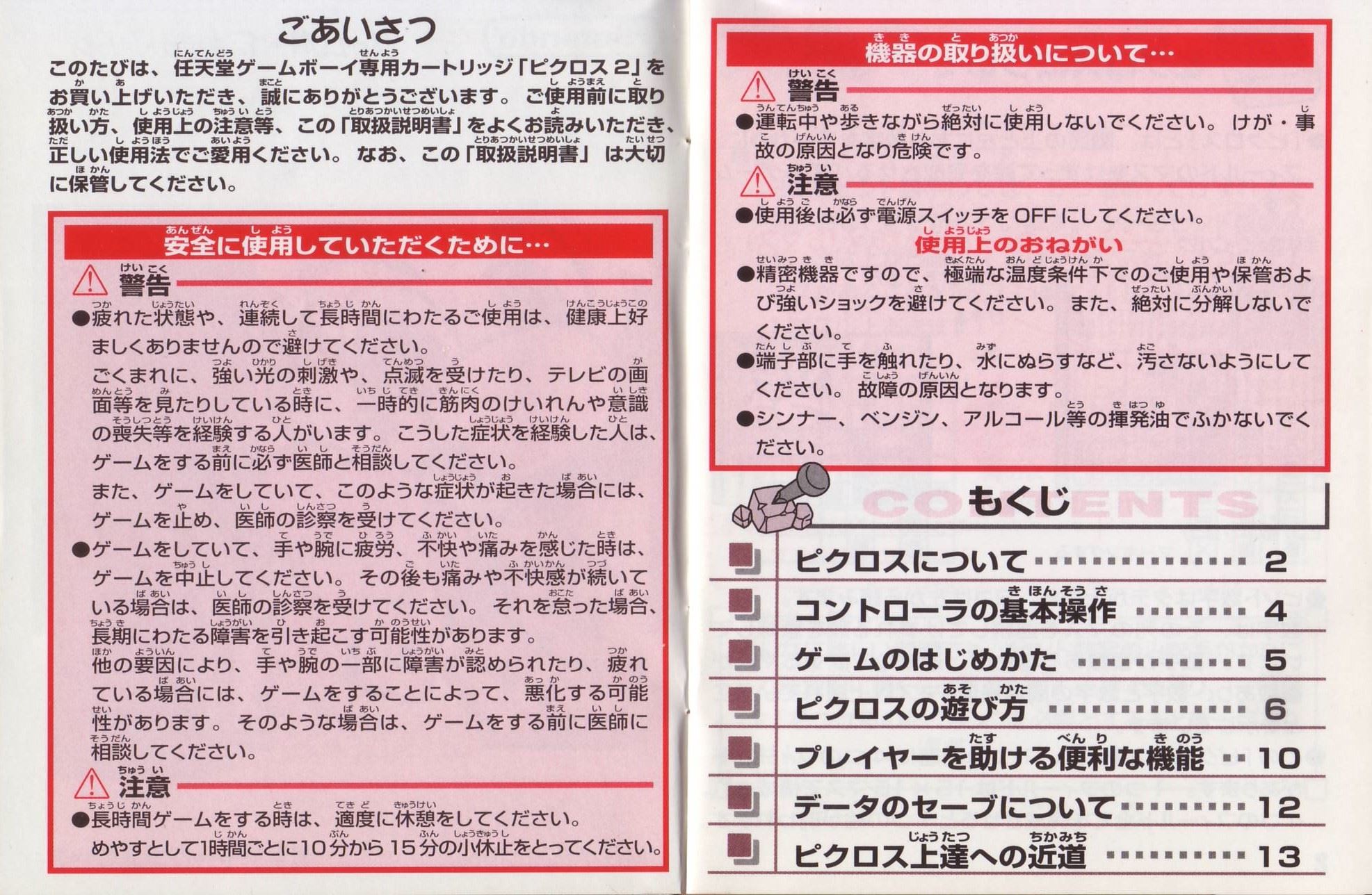 HOME > ピクロス2攻略TOP > 取扱説明書