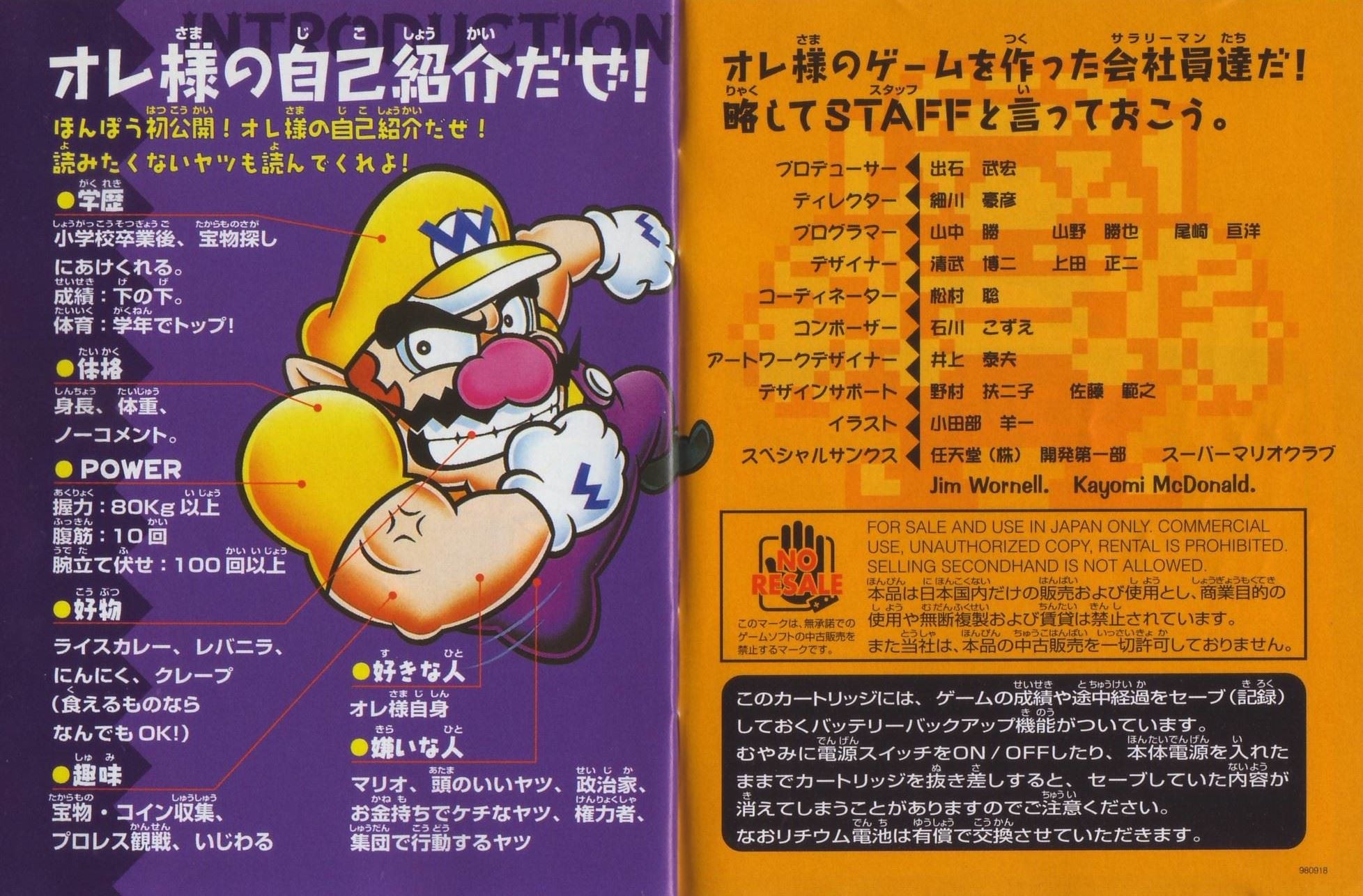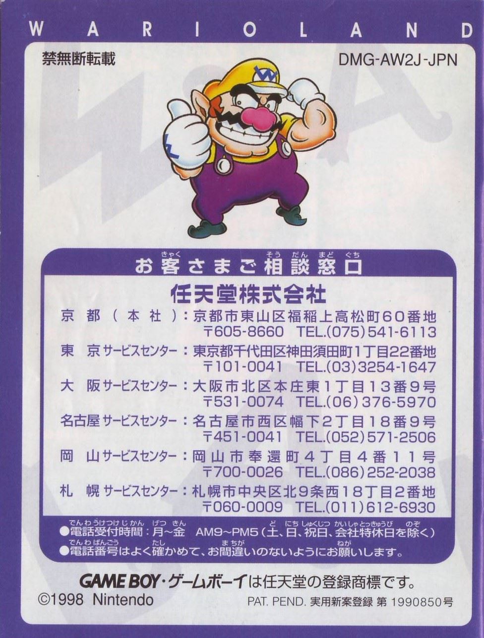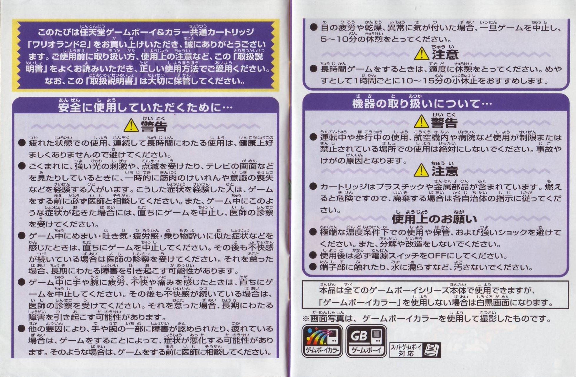 HOME > ワリオランド2 盗まれた財宝攻略TOP > 取扱説明書