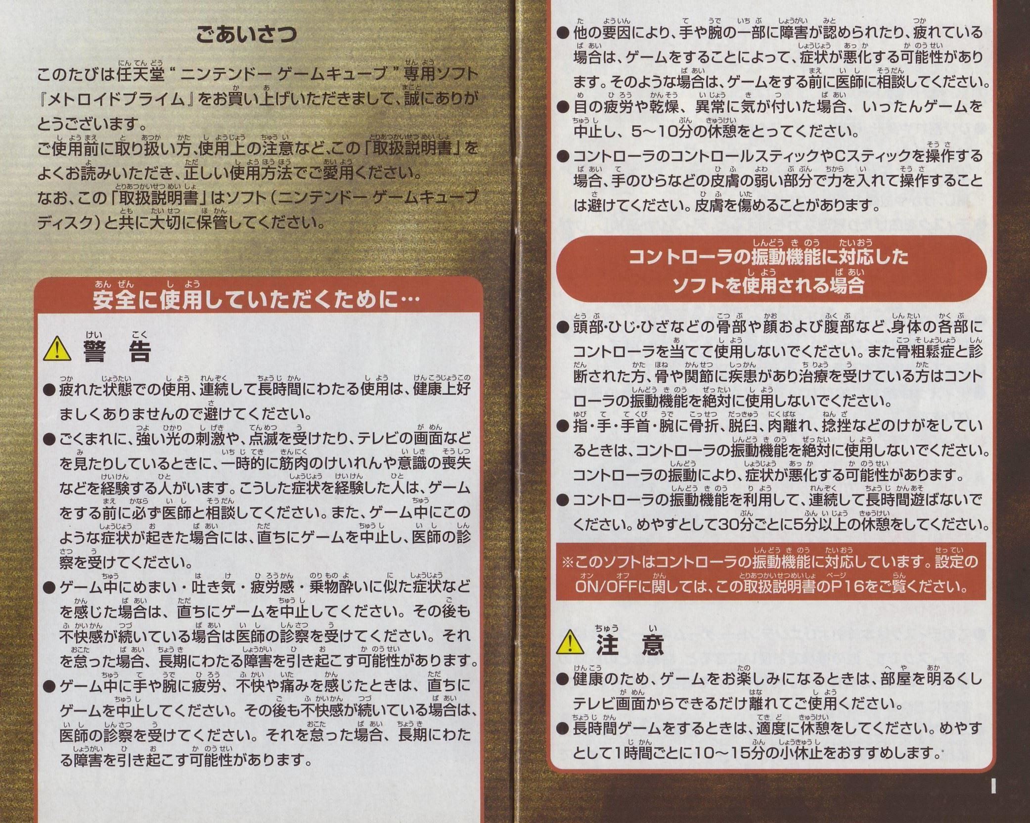HOME > メトロイド プライム攻略TOP > 取扱説明書