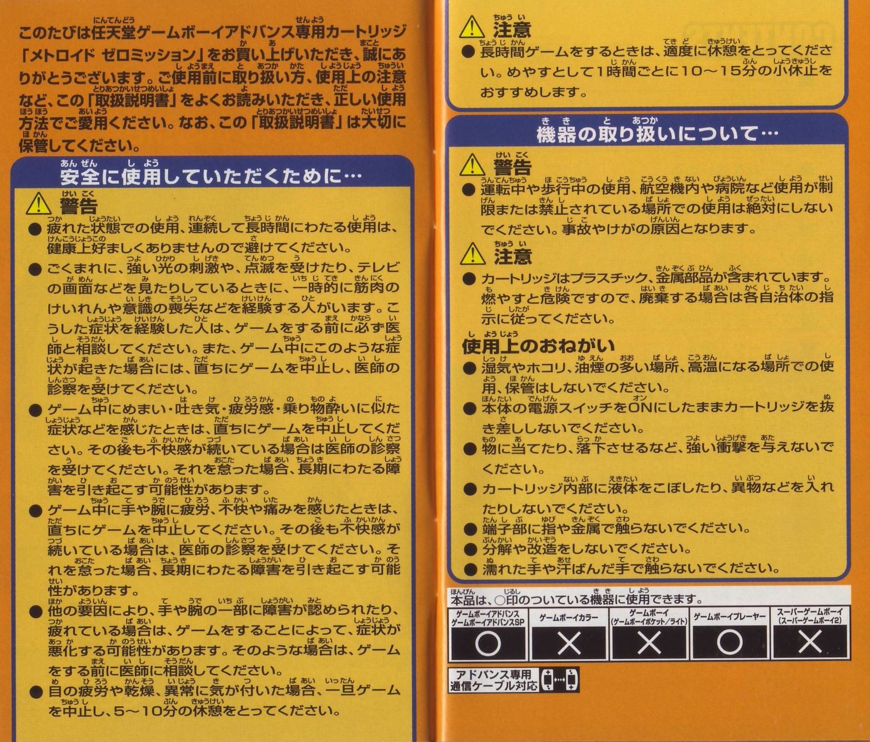 HOME > メトロイド ゼロミッション METROID: ZERO MISSION攻略TOP > 取扱説明書