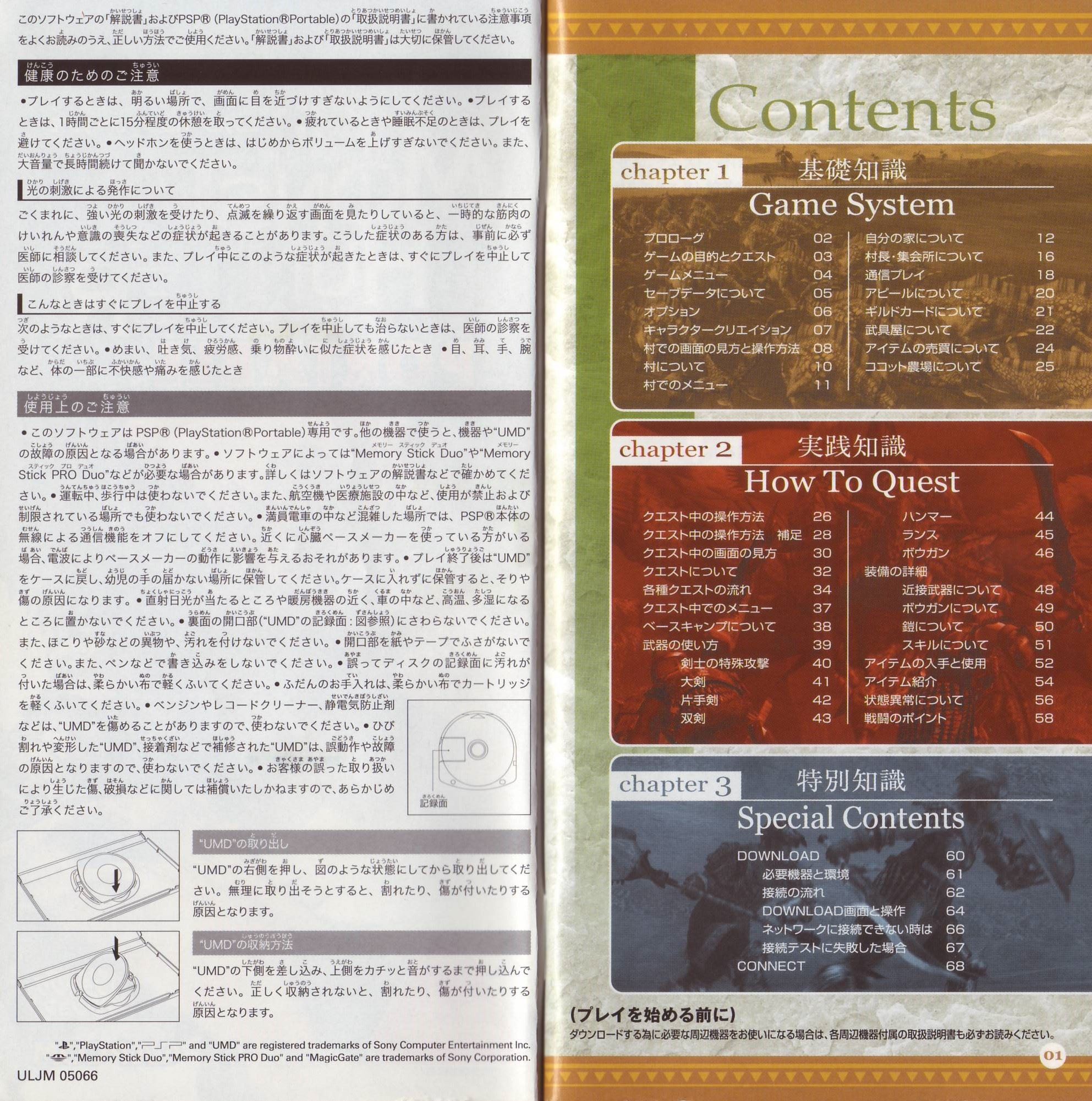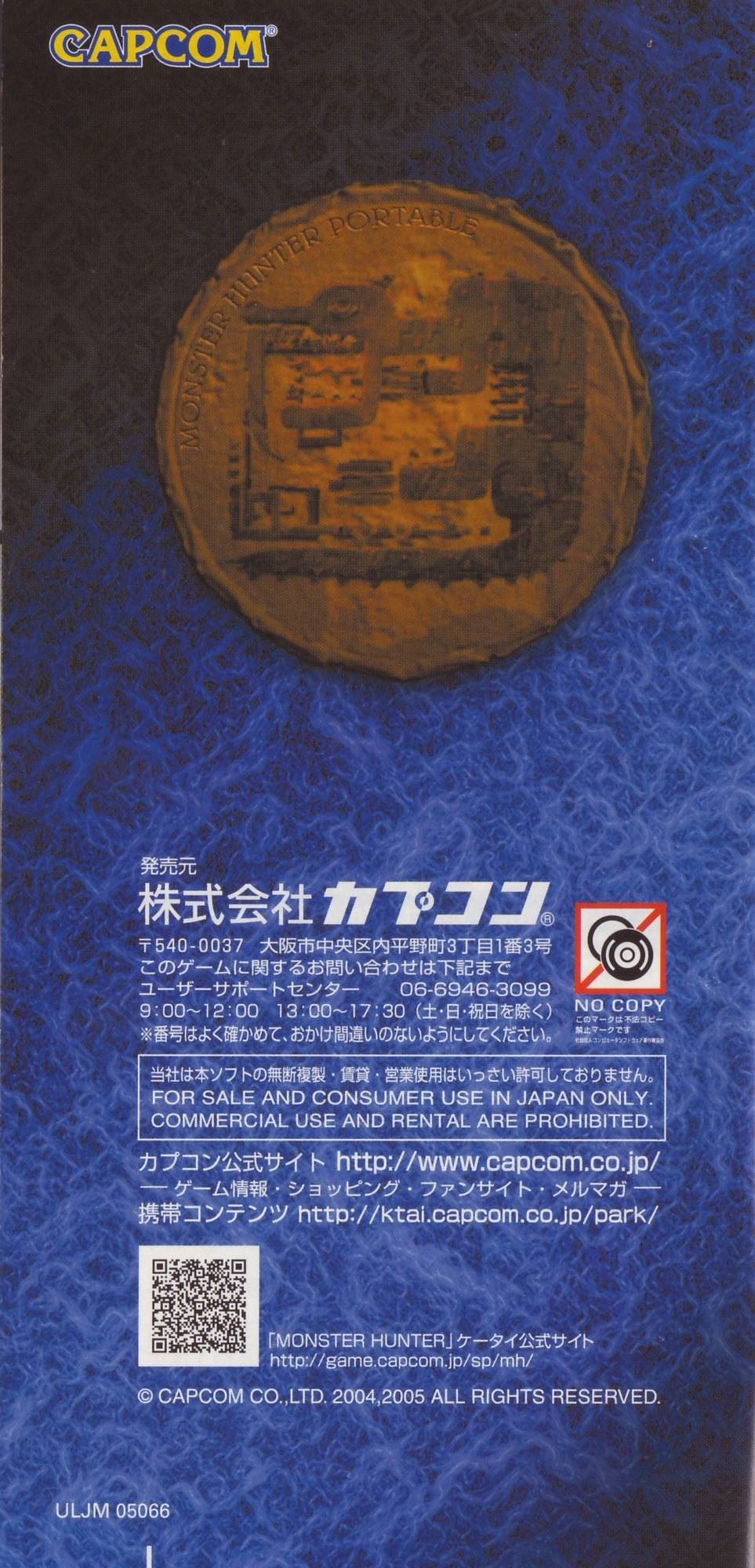 HOME > モンスターハンターポータブル攻略TOP > 取扱説明書