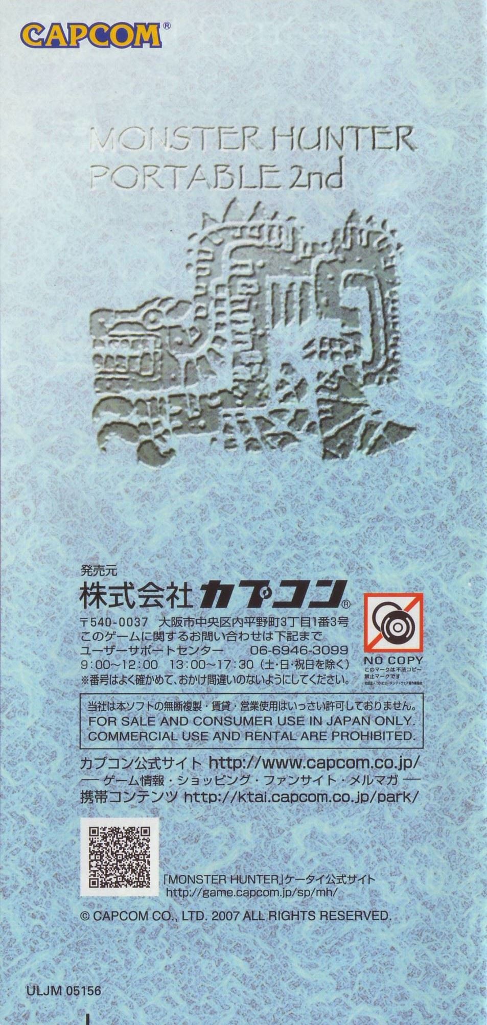 HOME > モンスターハンターポータブル2nd攻略TOP > 取扱説明書