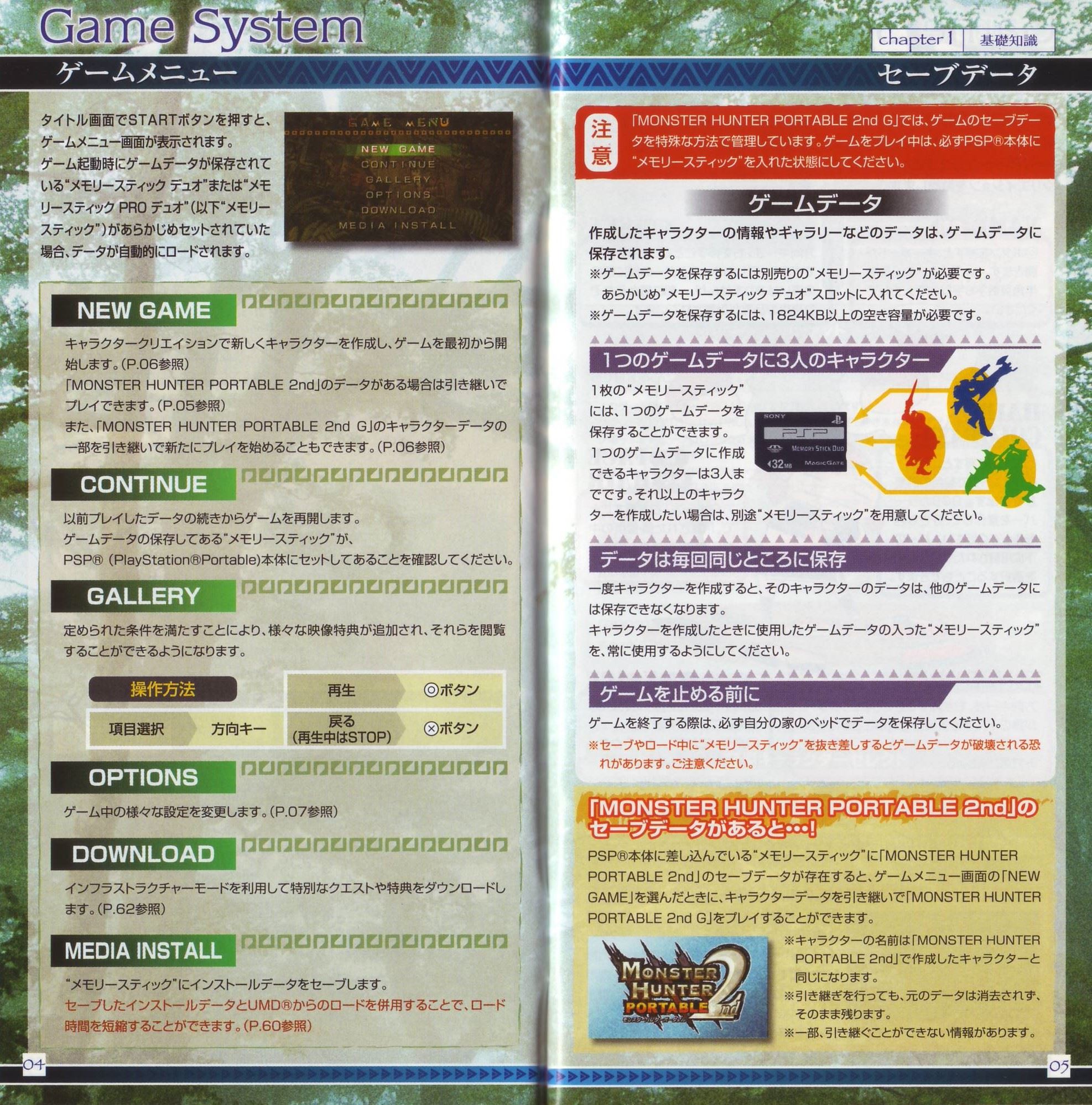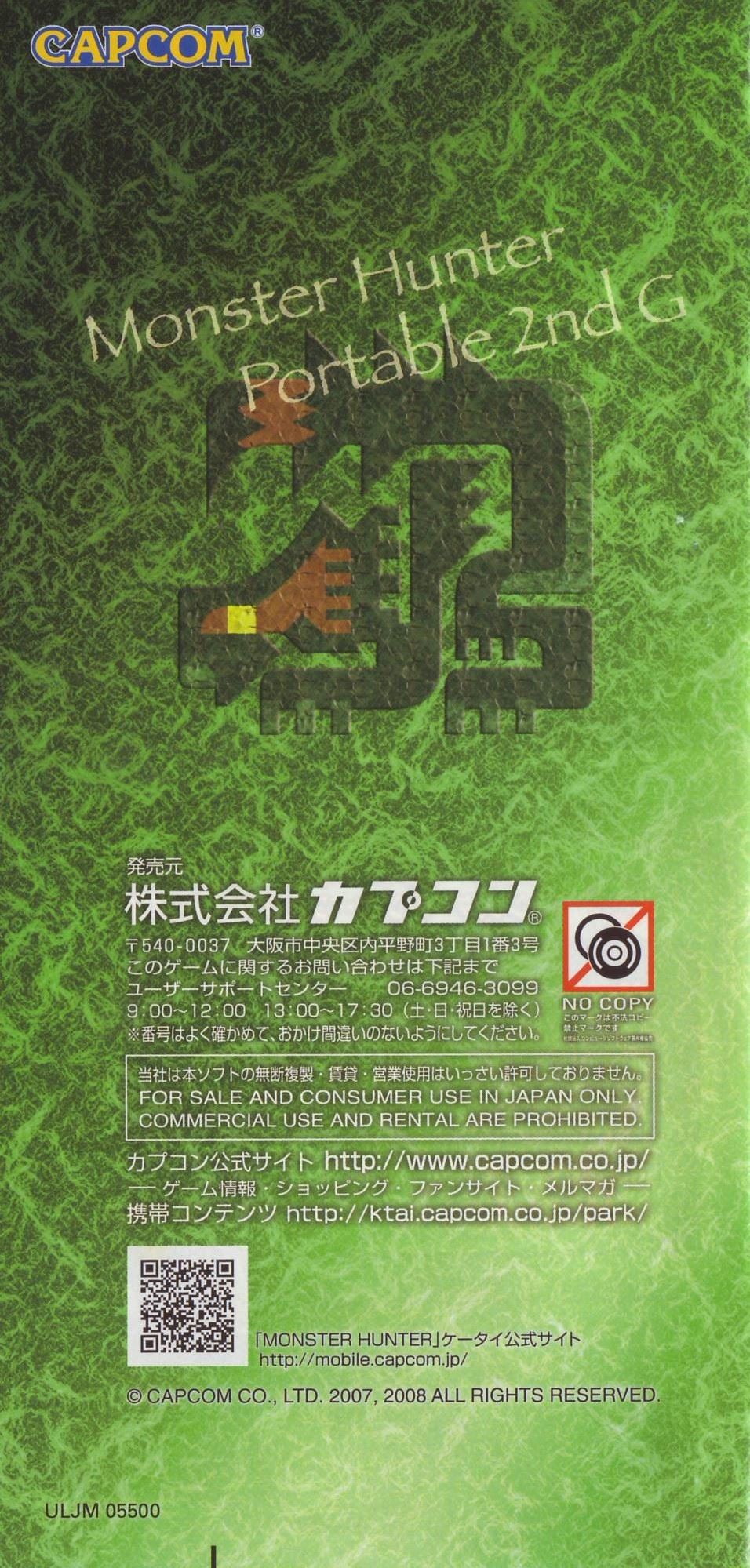 HOME > モンスターハンターポータブル2ndG攻略TOP > 取扱説明書