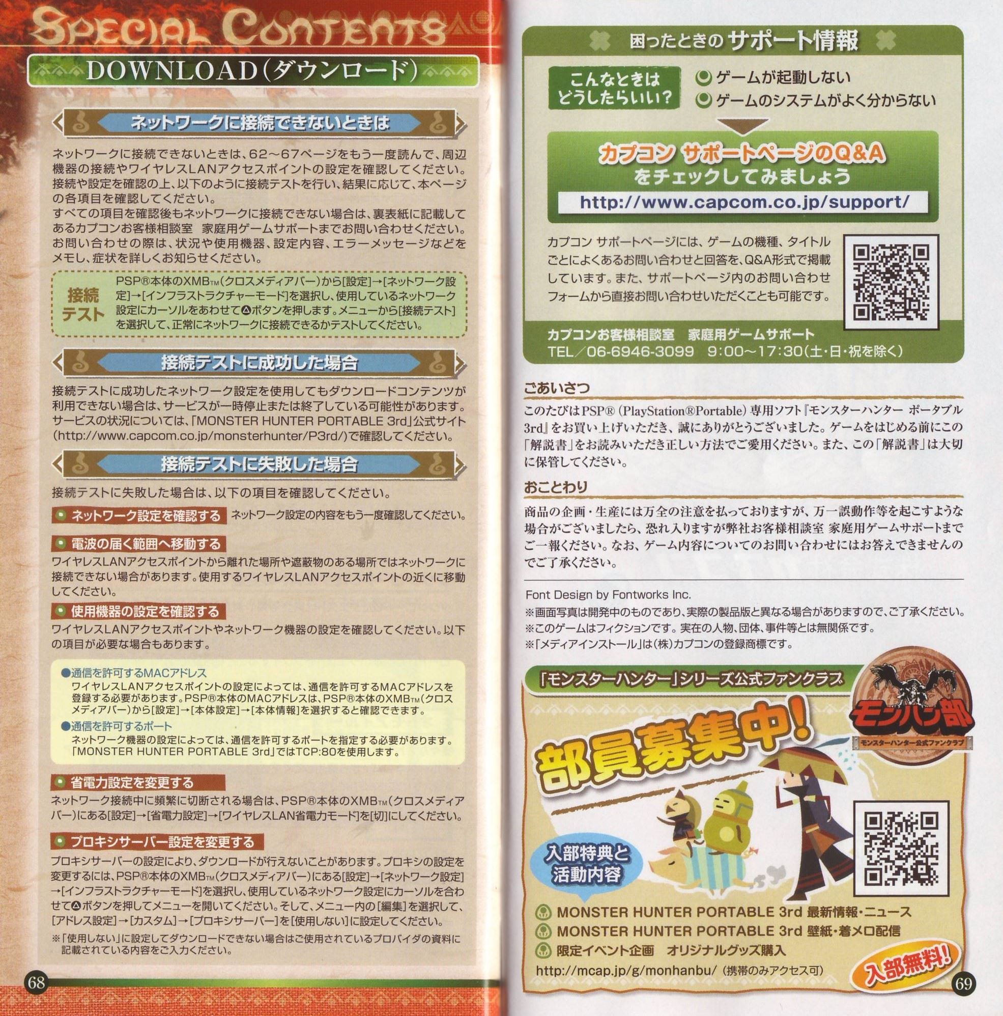 HOME > モンスターハンターポータブル3rd攻略TOP > 取扱説明書