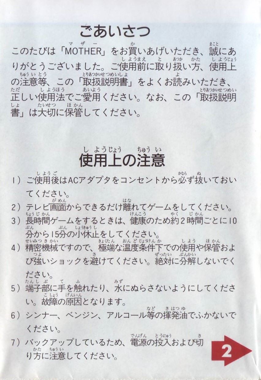 HOME > マザー1 mother攻略TOP > 取扱説明書