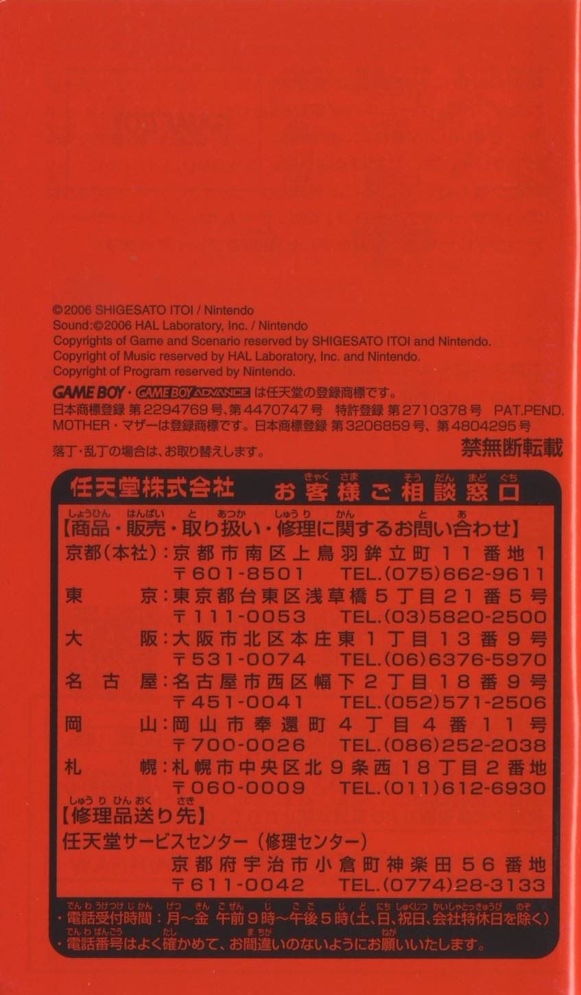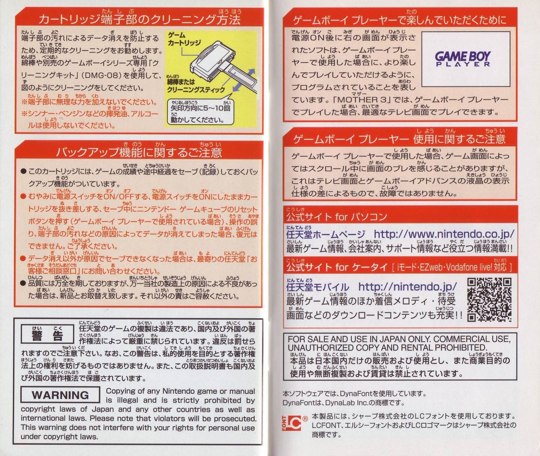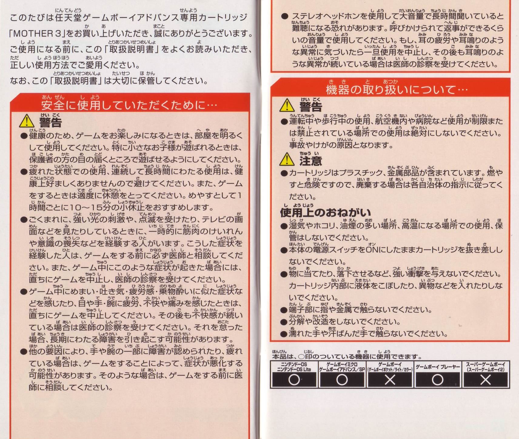 HOME > マザー3 mother3攻略TOP > 取扱説明書