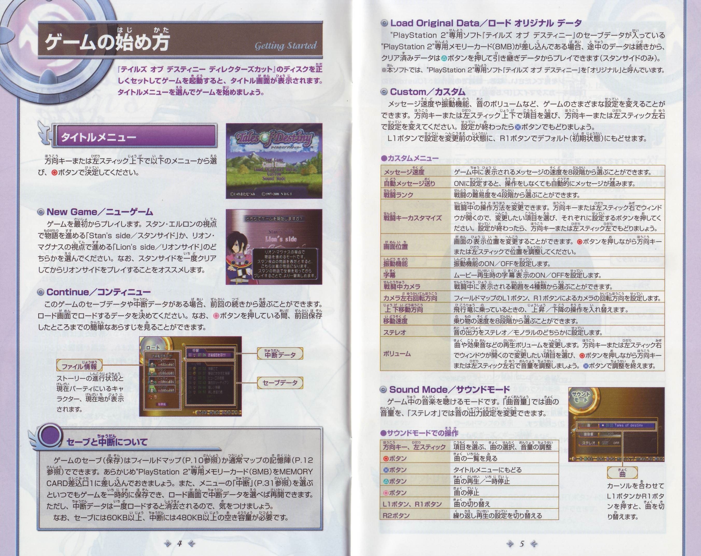 HOME > テイルズオブデスティニー ディレクターズカット攻略TOP > 取扱説明書