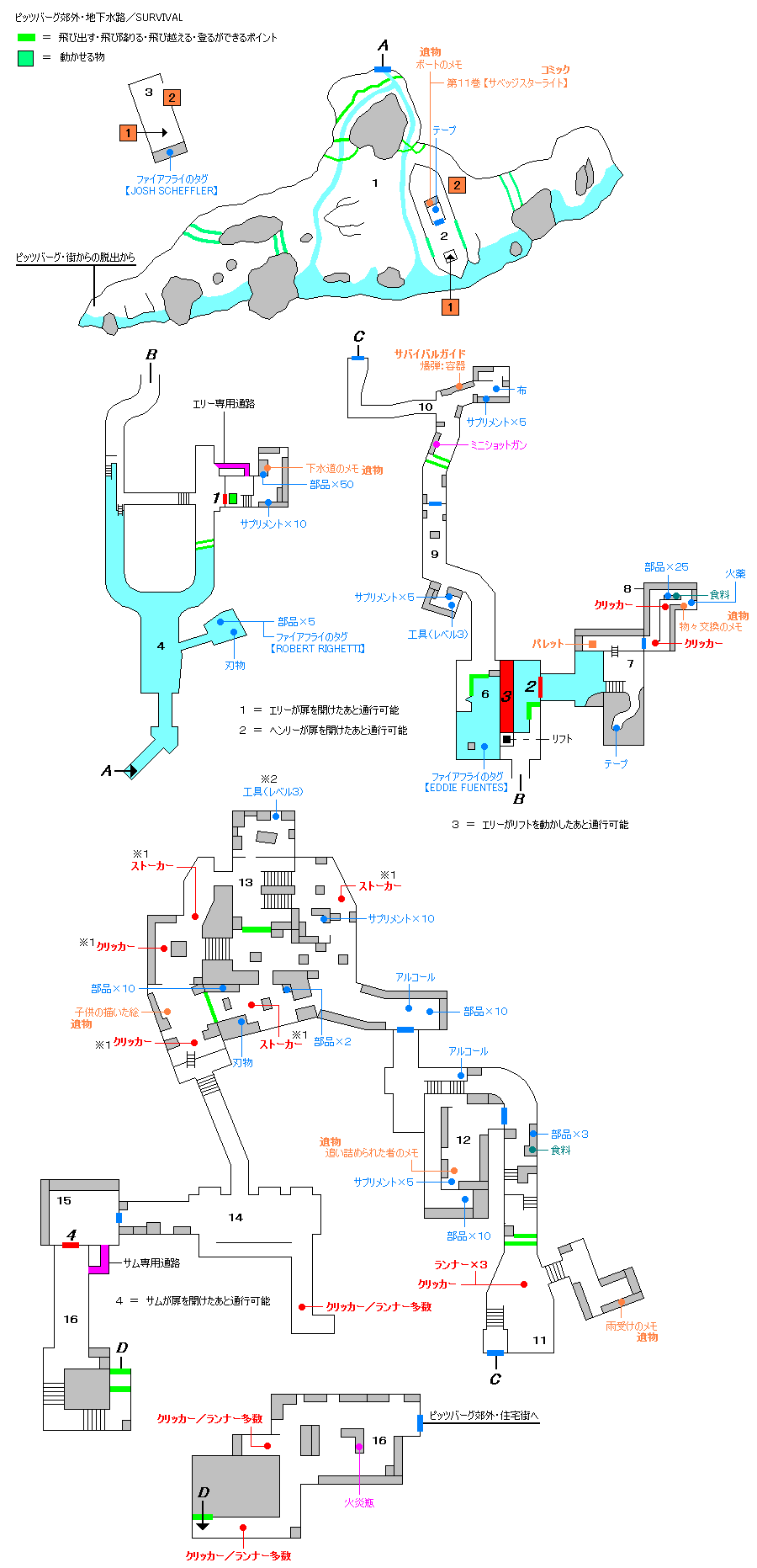 MAP(モンスター/アイテム/遺物配置)【SURVIVOR】 ピッツバーグ郊外・地下水路