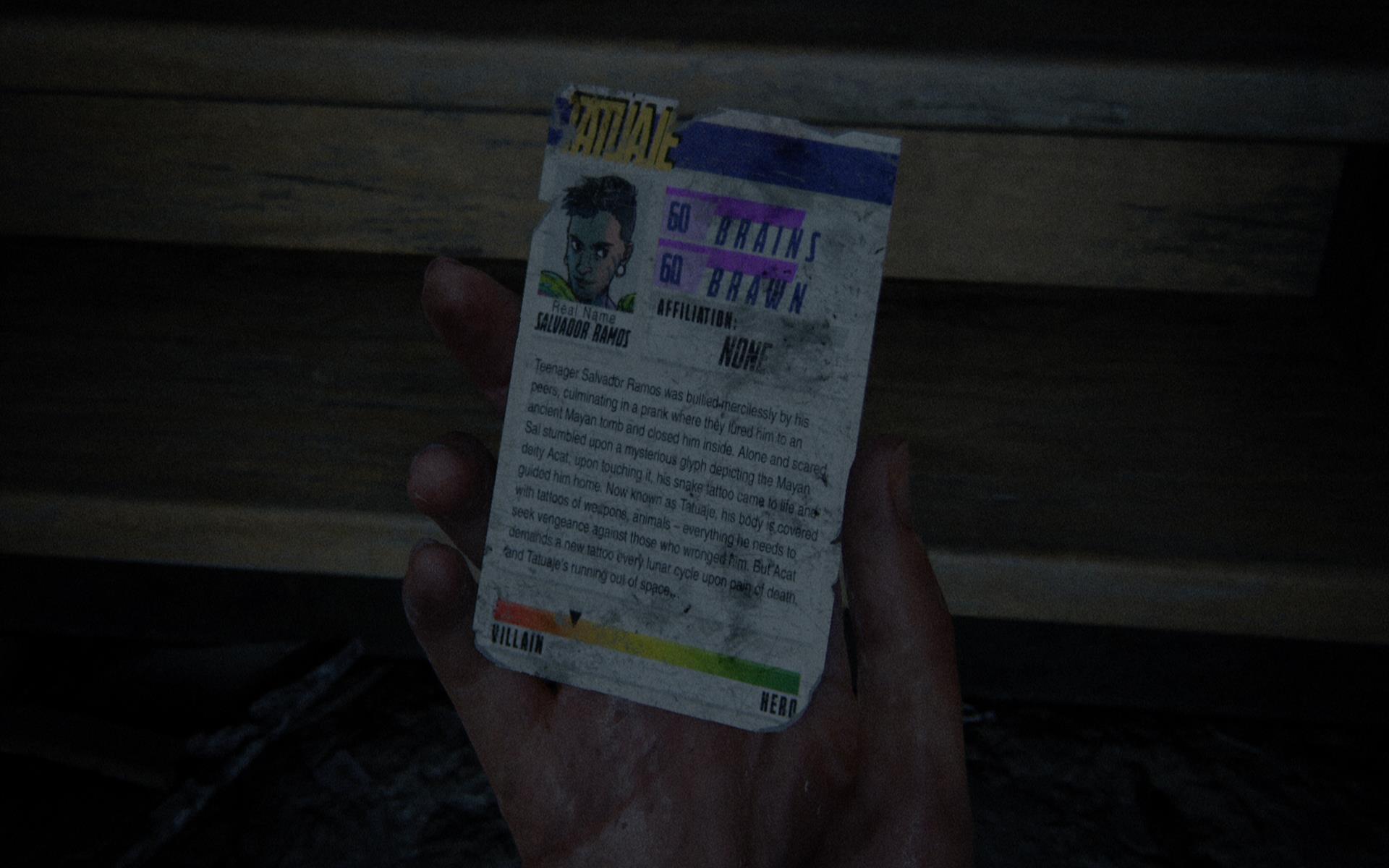 文字に触ると、体のヘビのタトゥーに命が宿り、サルバドールを家まで導いてくれたという。
