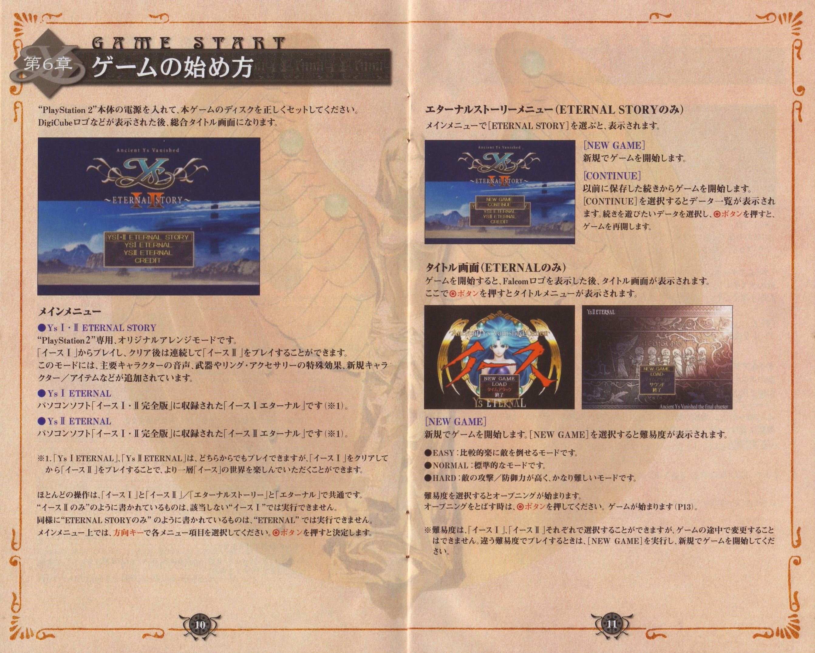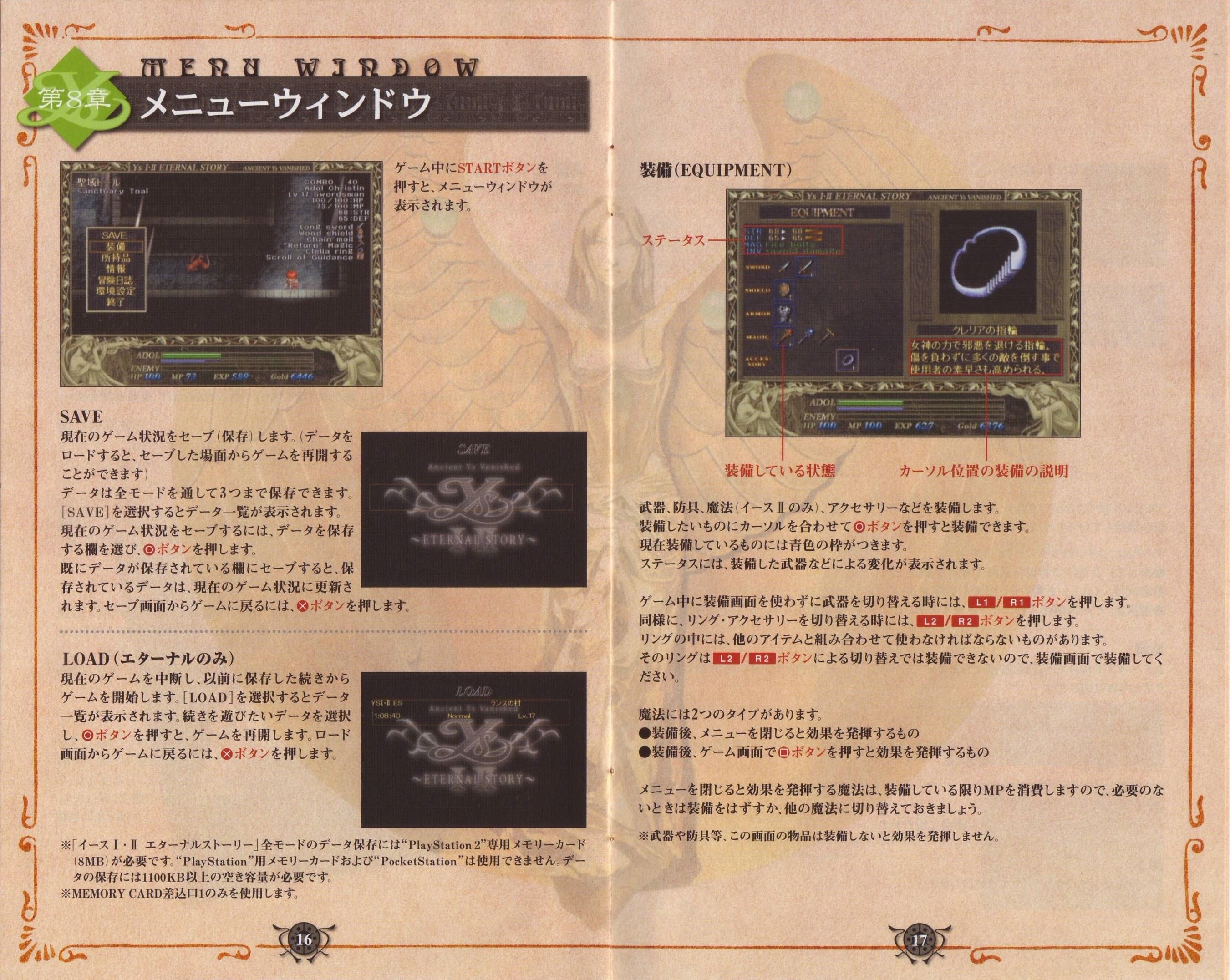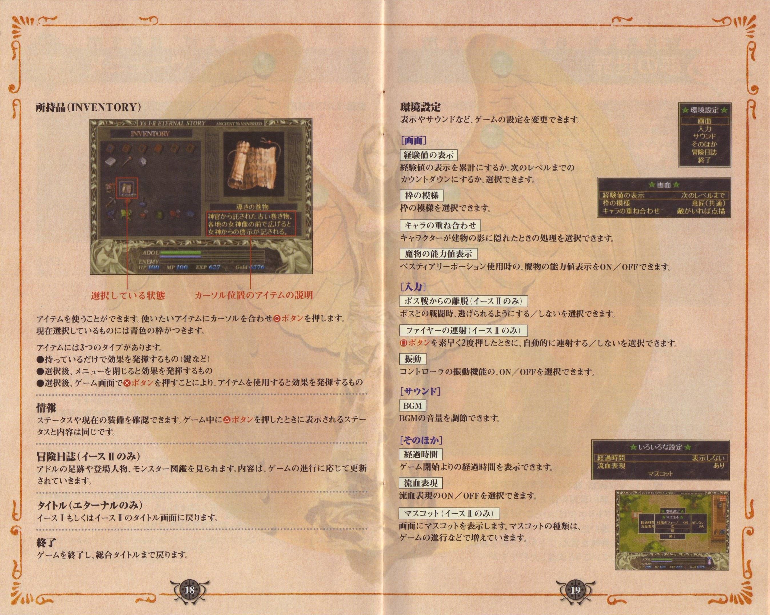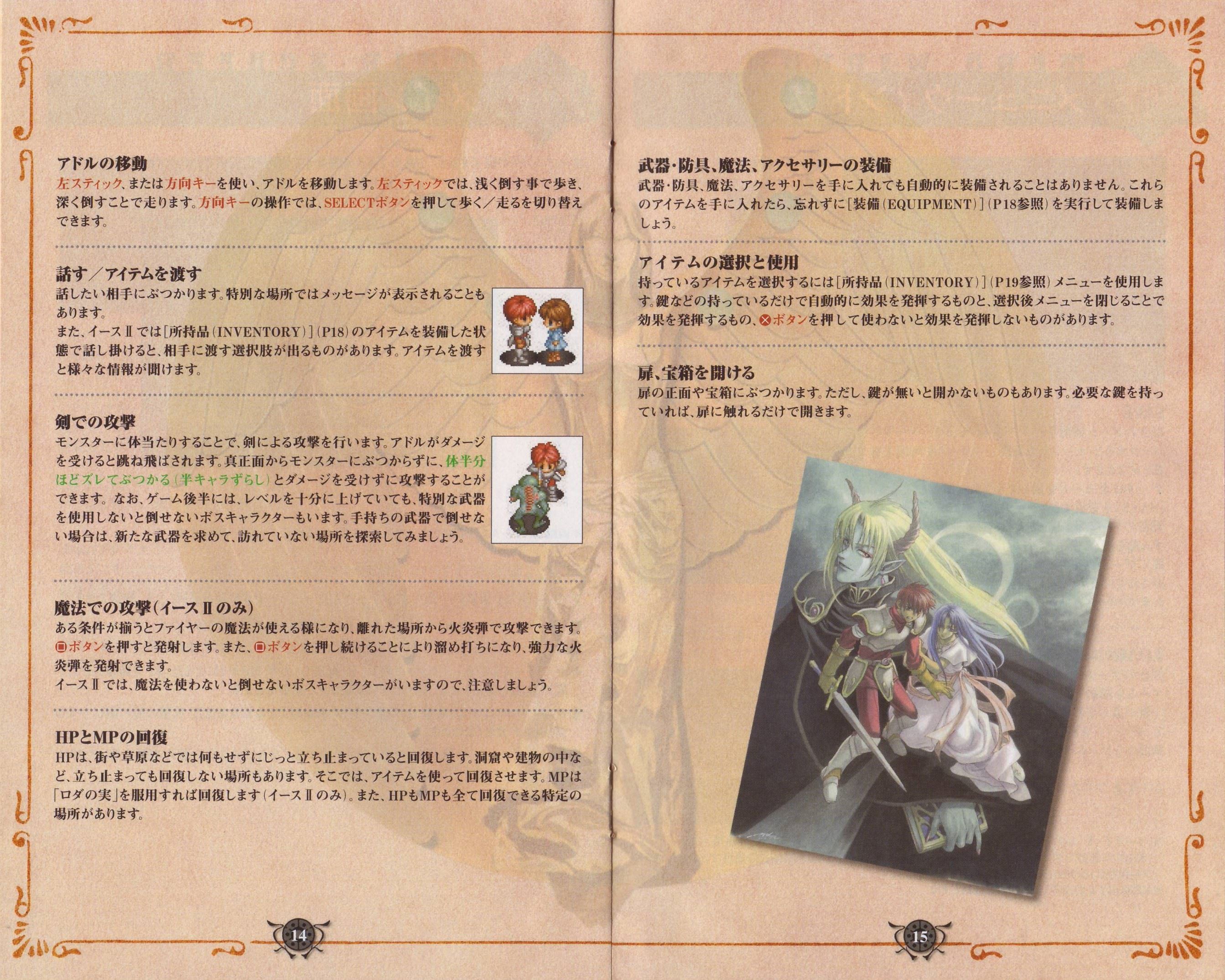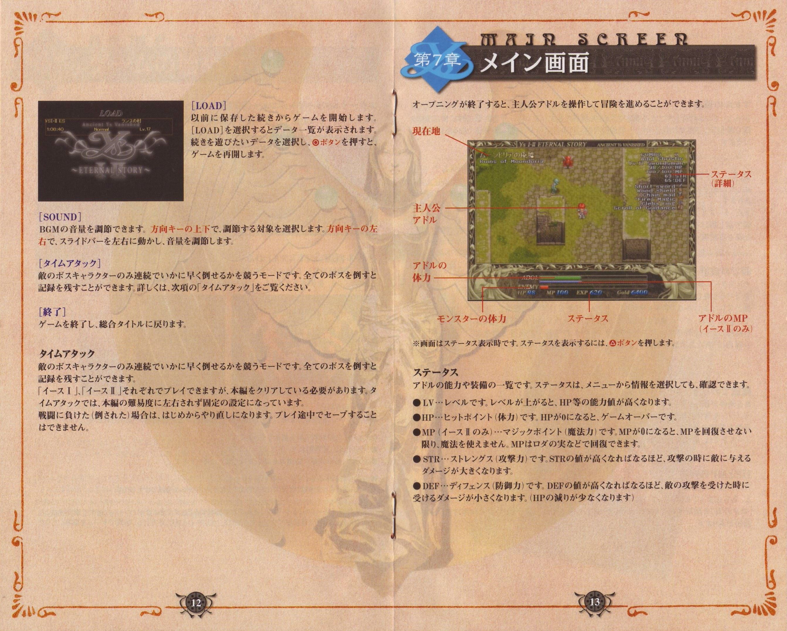 HOME > イース1+2 エターナルストーリー ETERNAL STORY攻略TOP > 取扱説明書