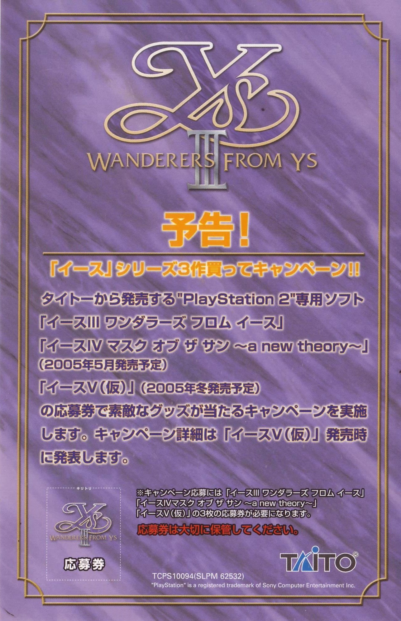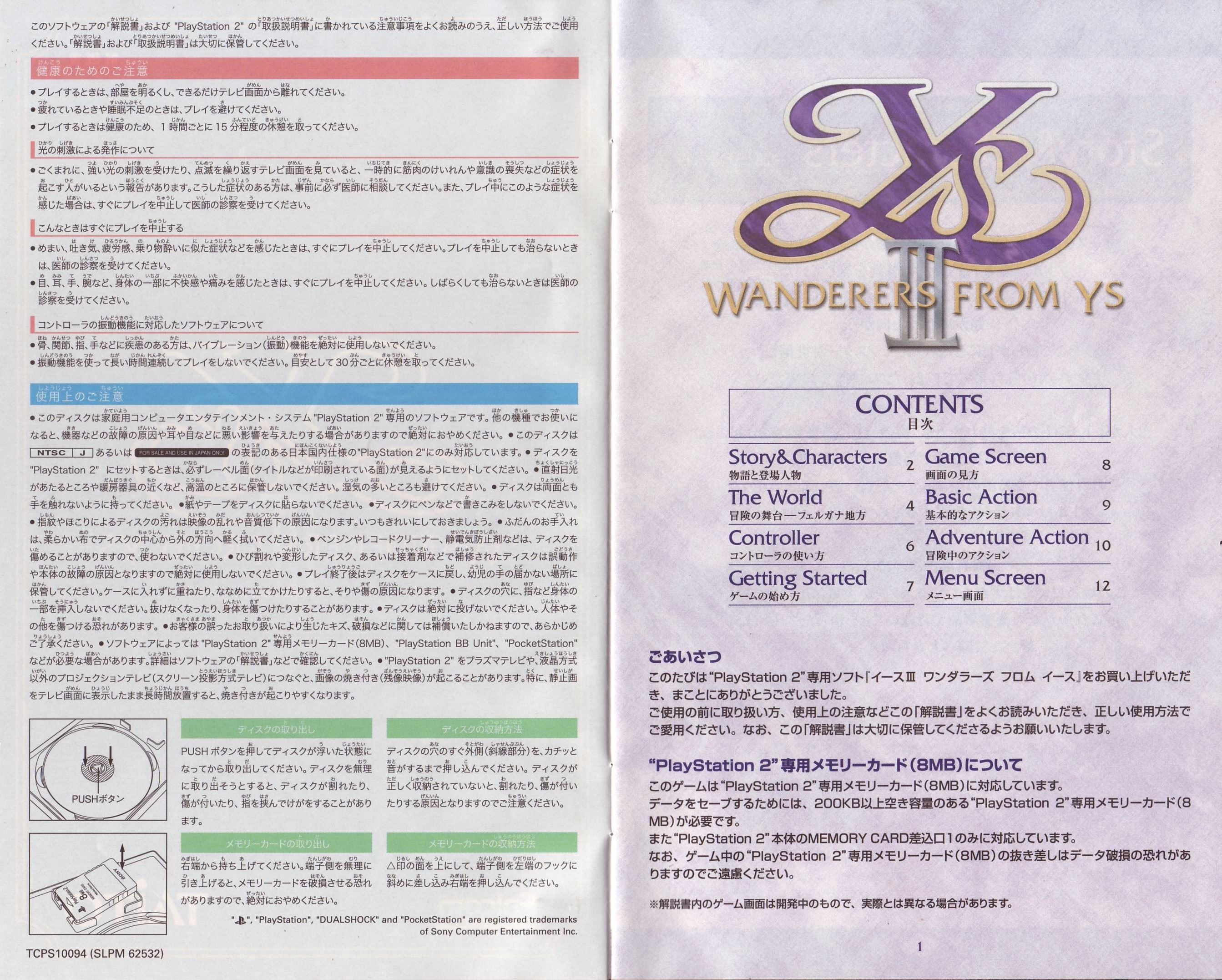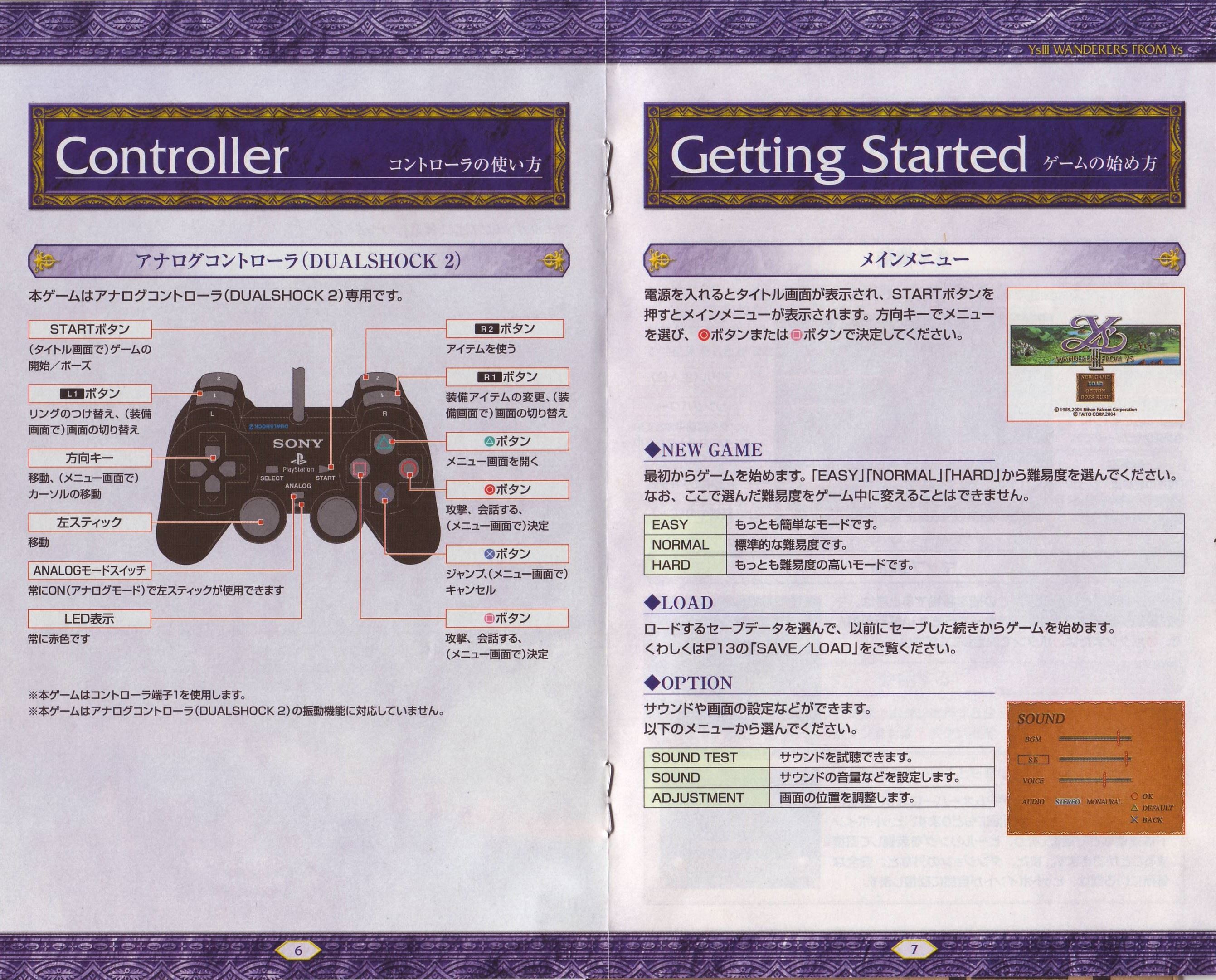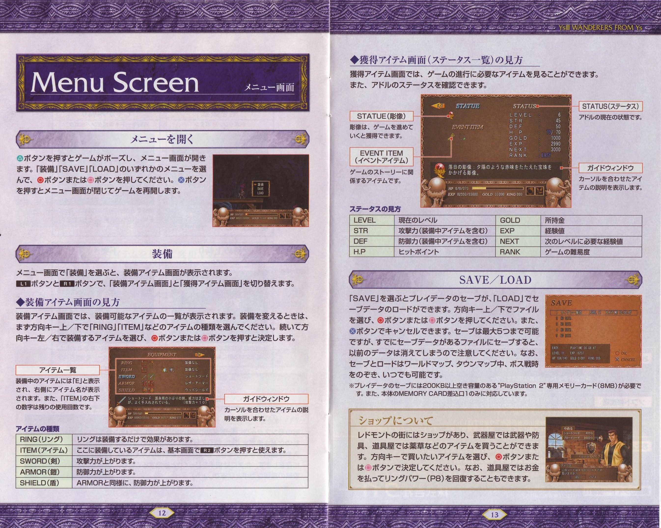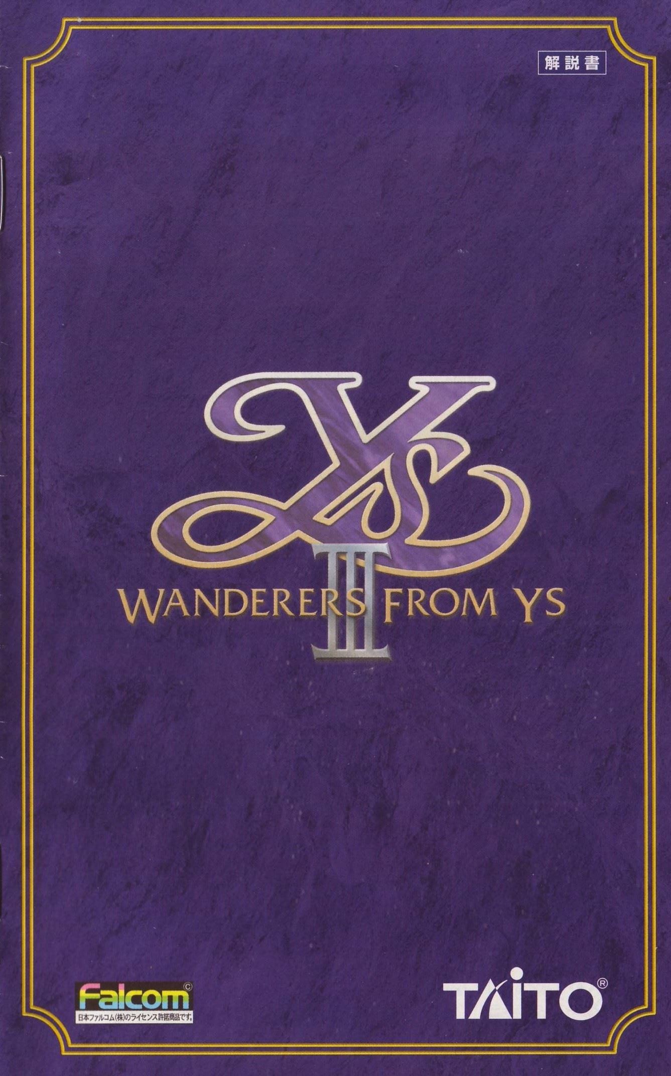 HOME > イース3 ワンダラーズ フロム イース WANDERERS FROM YS攻略TOP > 取扱説明書