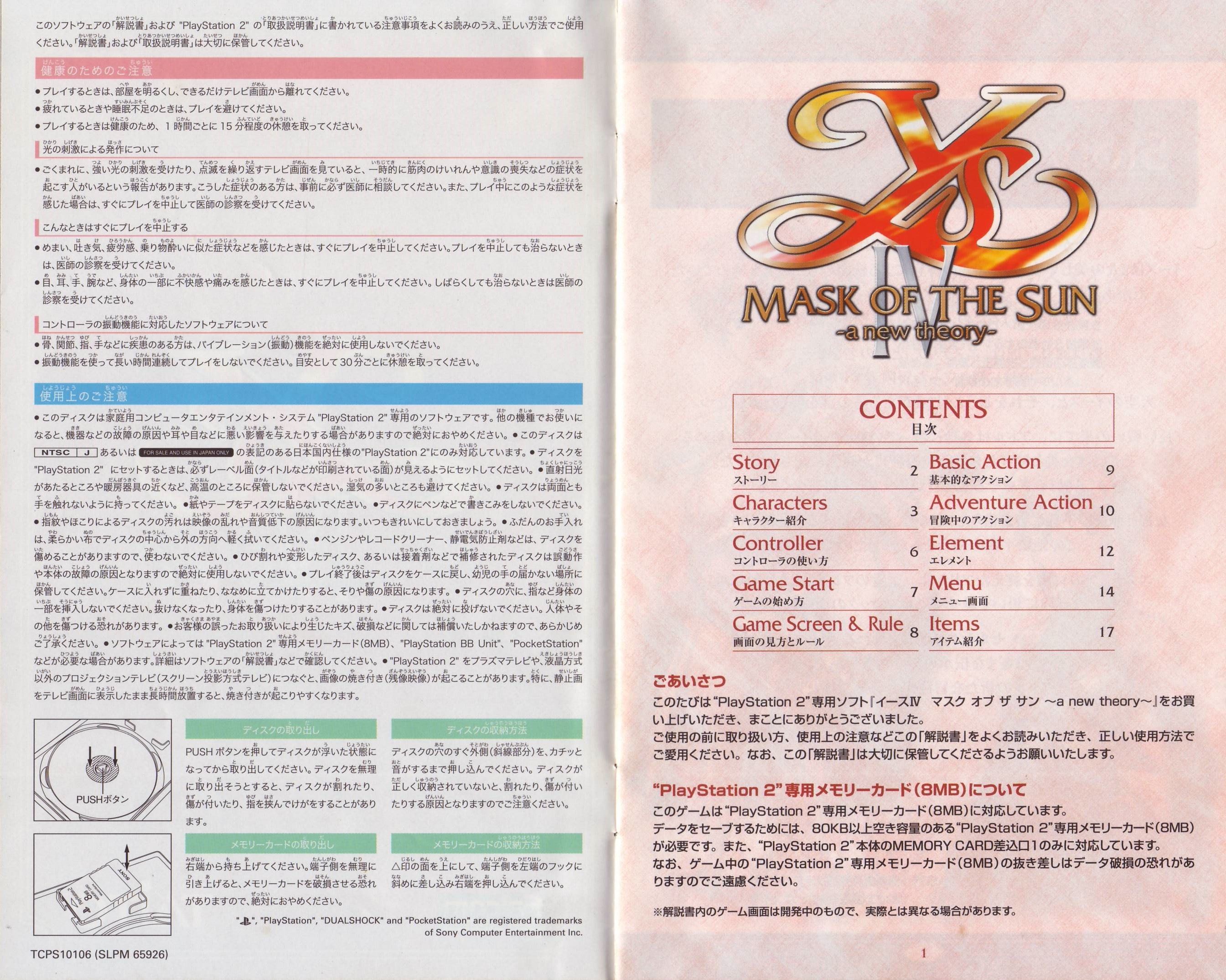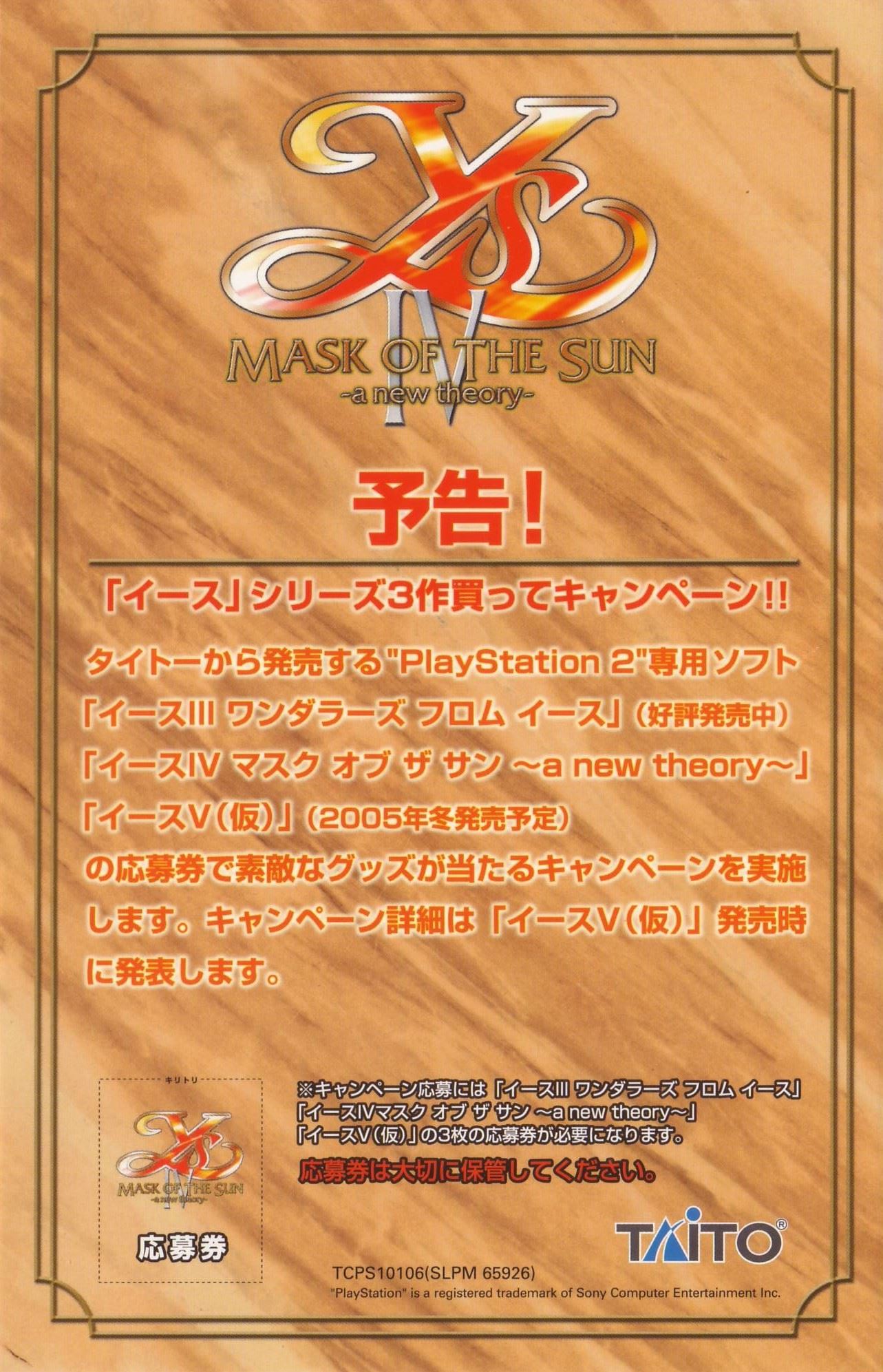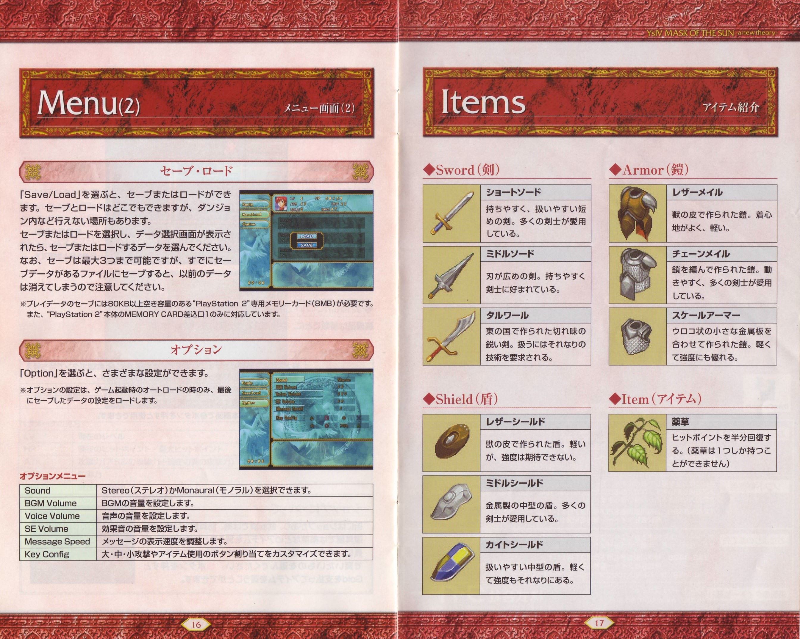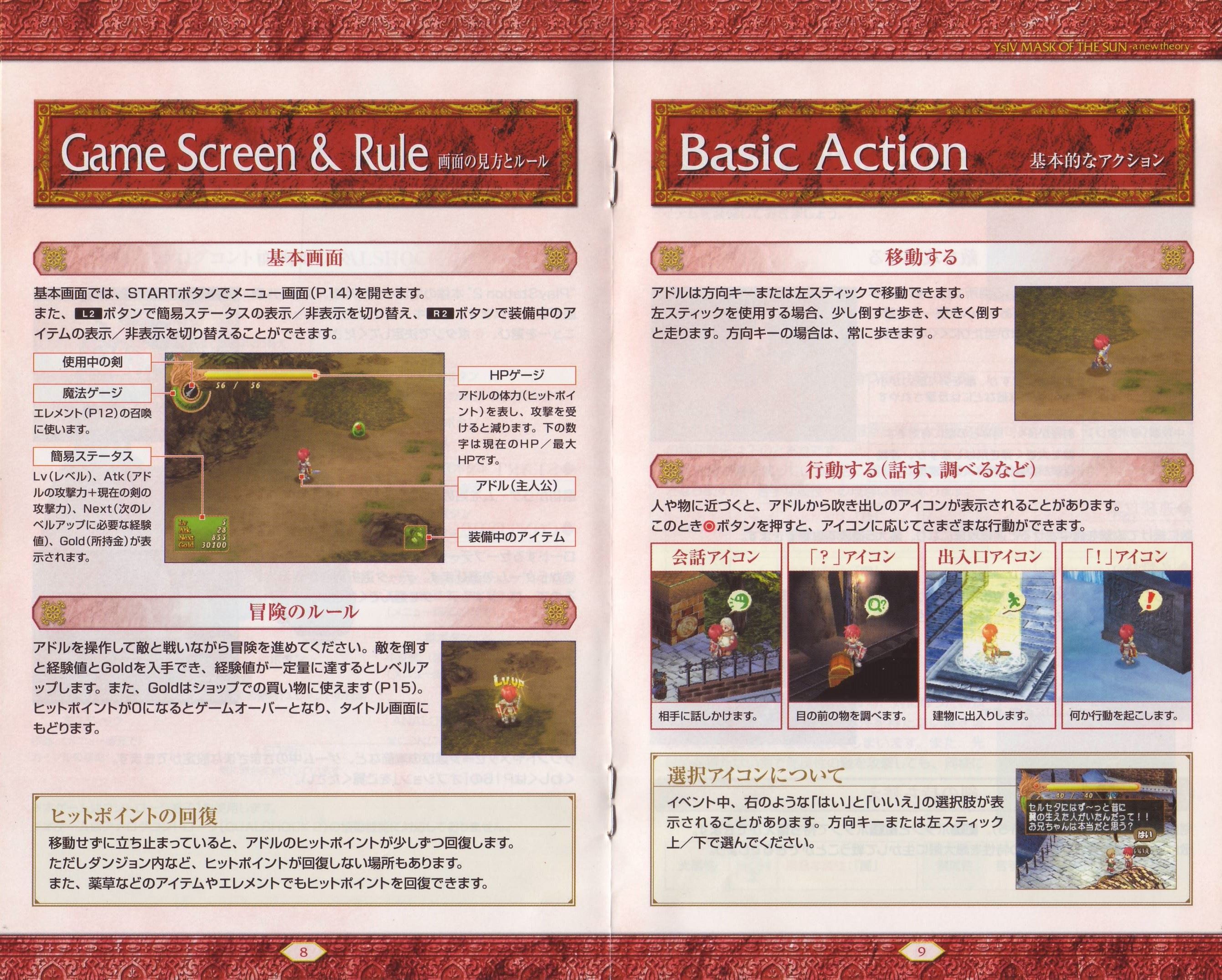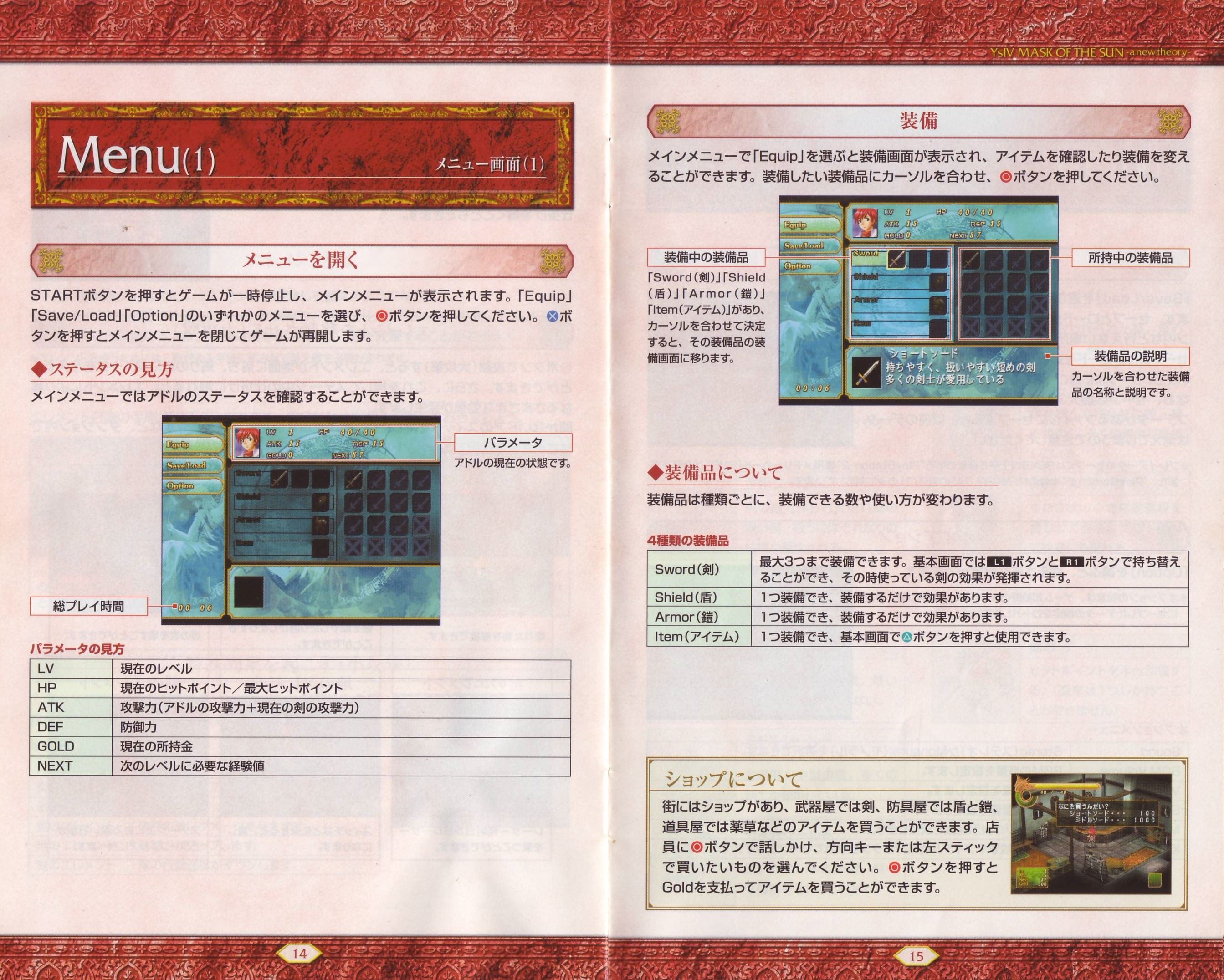 HOME > イース4 マスク オブ ザ サン ア ニュー セオリー MASK OF THE SUN a new theory攻略TOP > 取扱説明書
