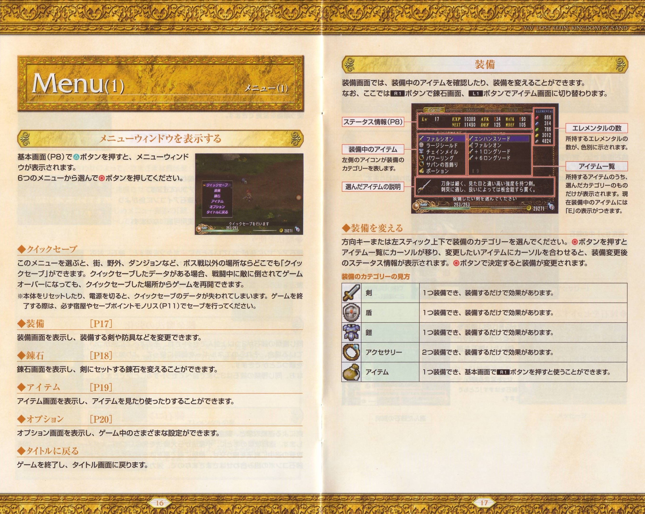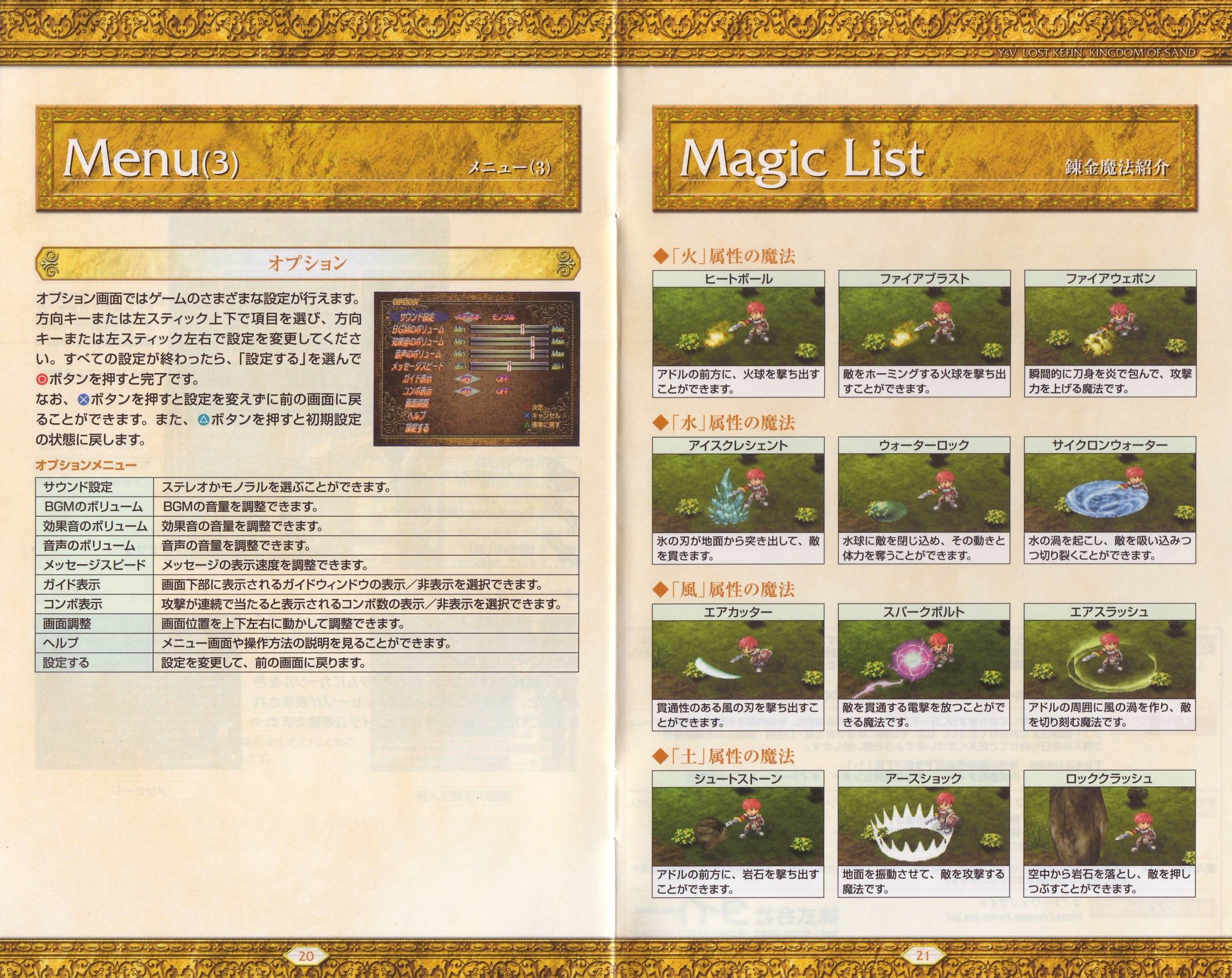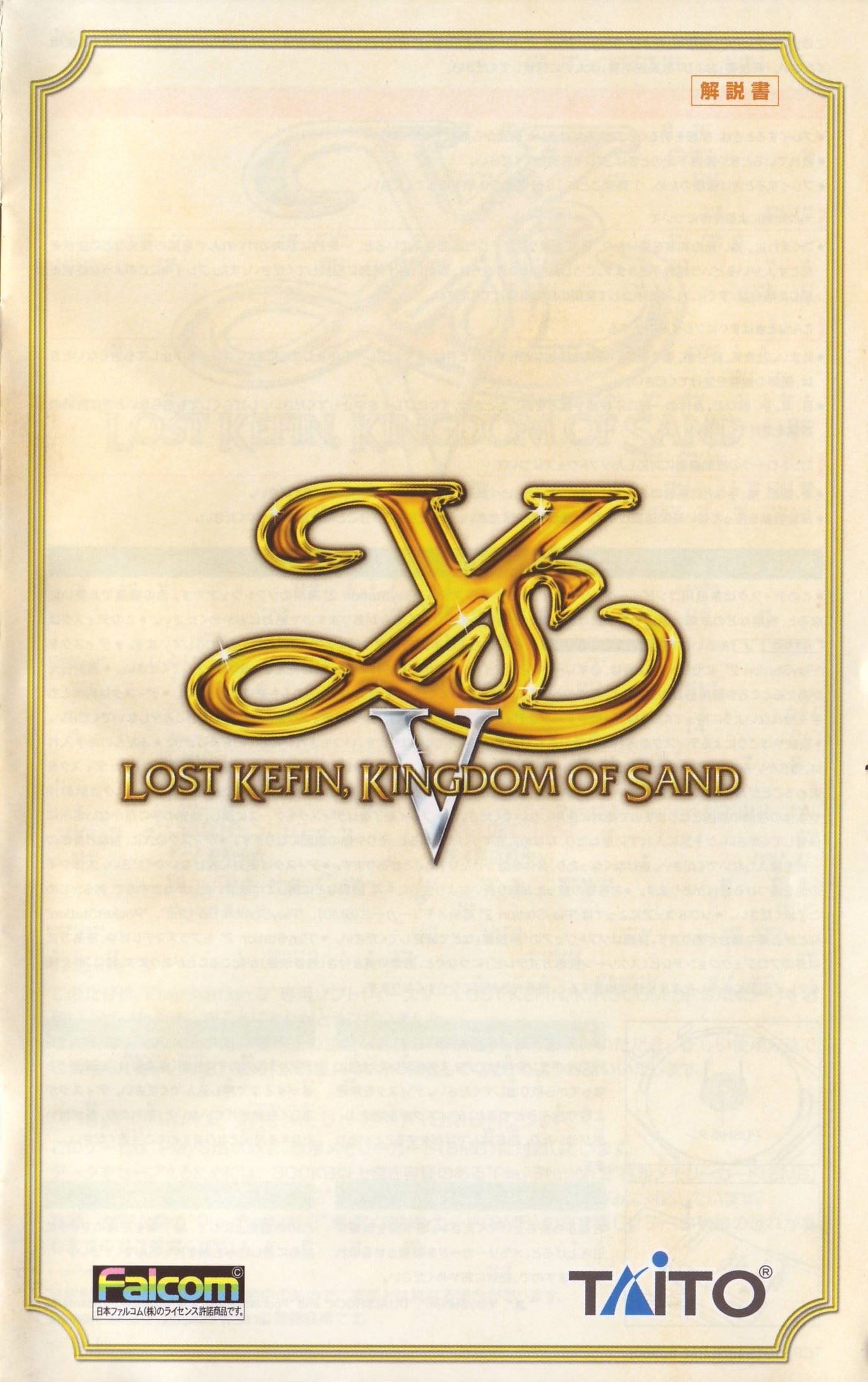 HOME > イース5 ロスト ケフィン キングダム オブ ザ サンド Lost Kefin, Kingdom of Sand攻略TOP > 取扱説明書