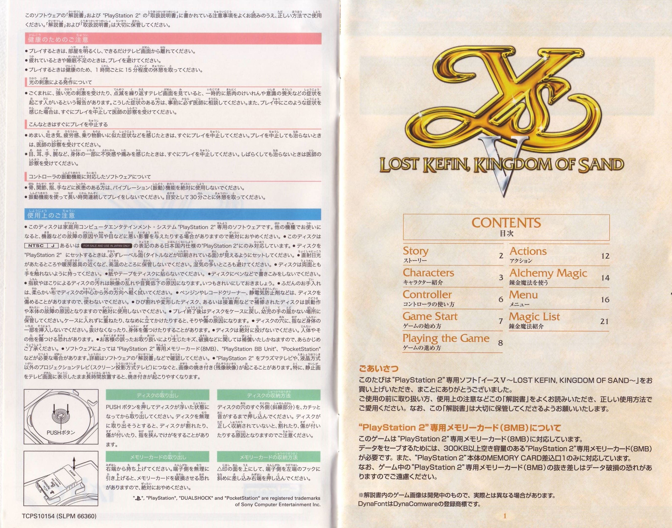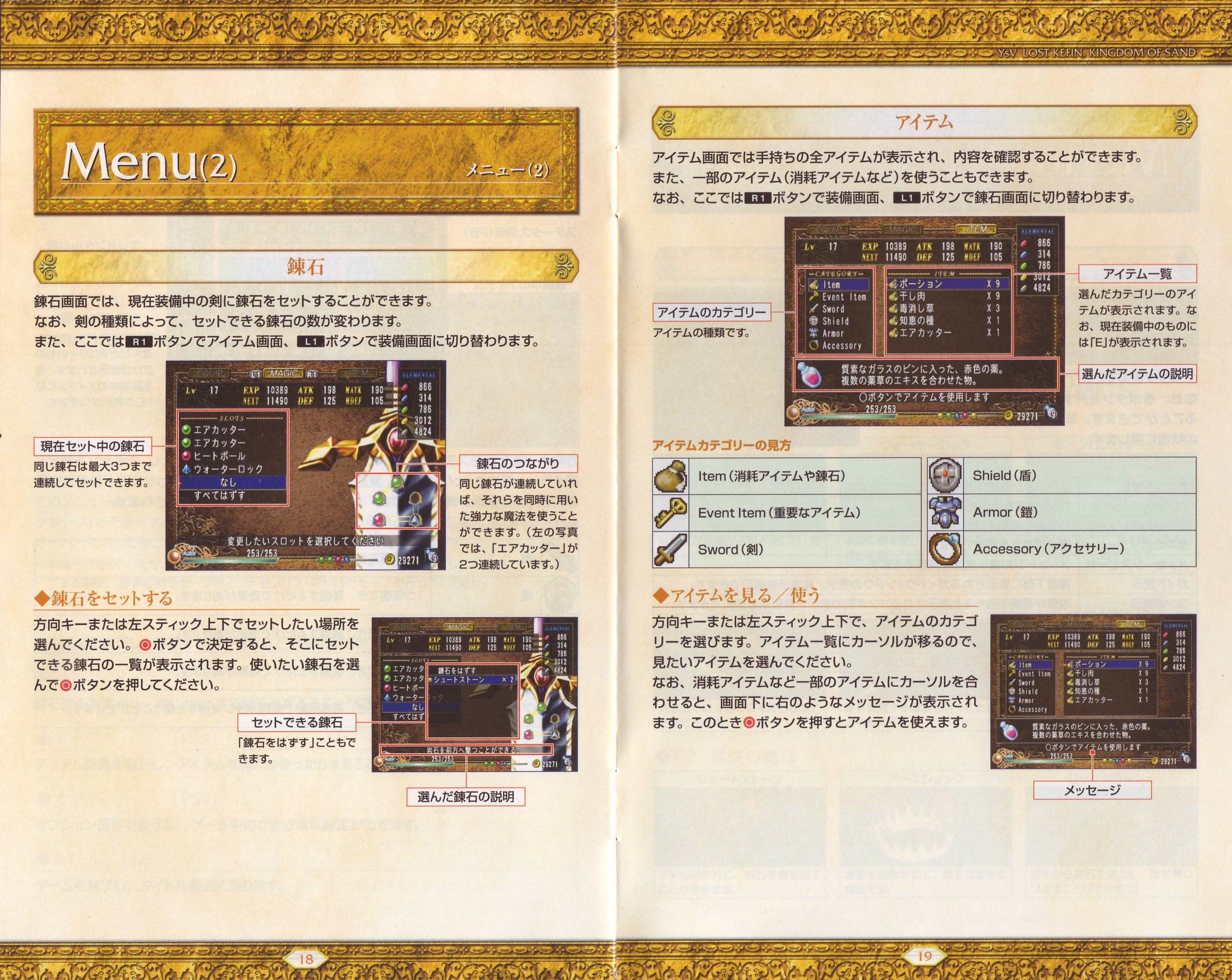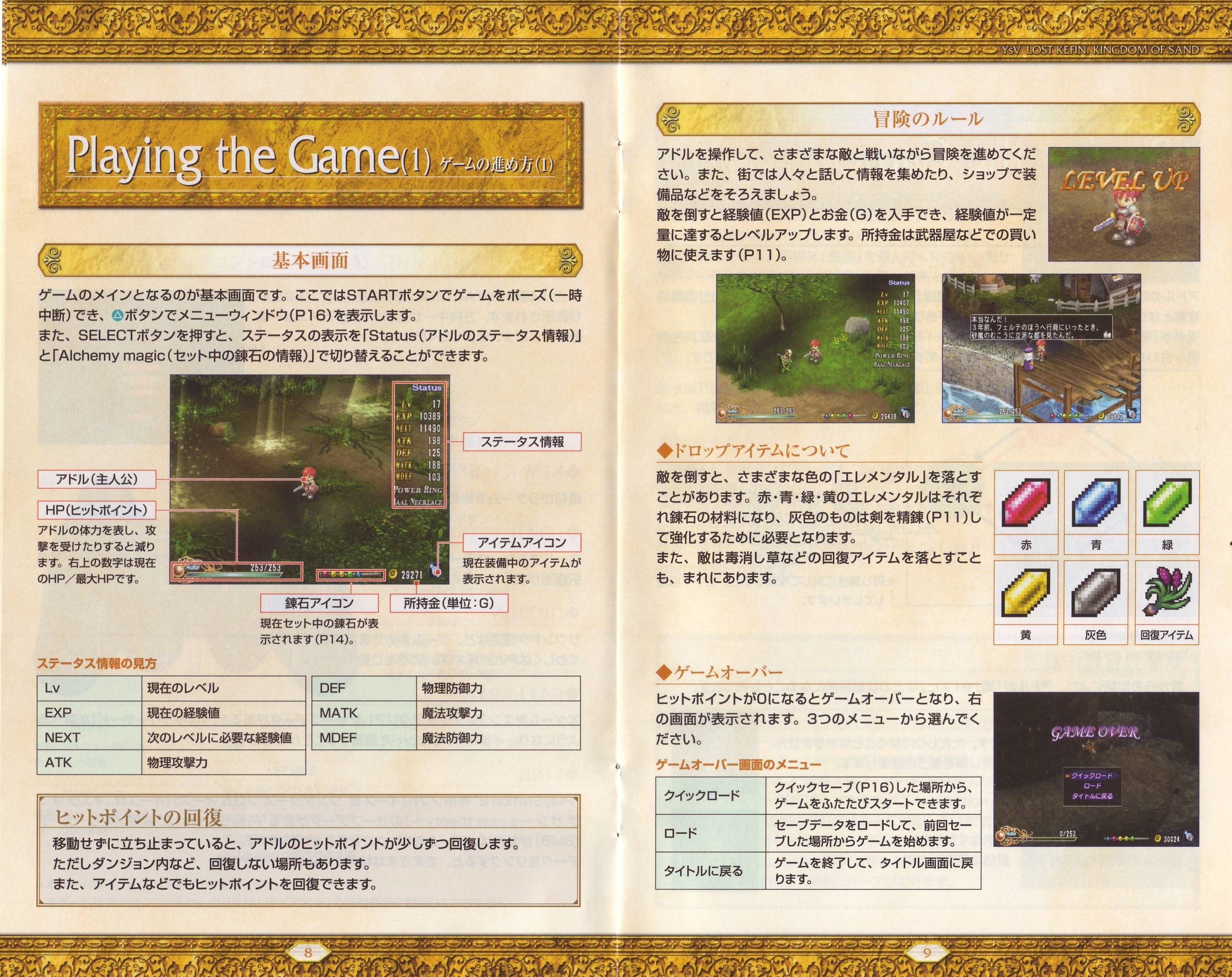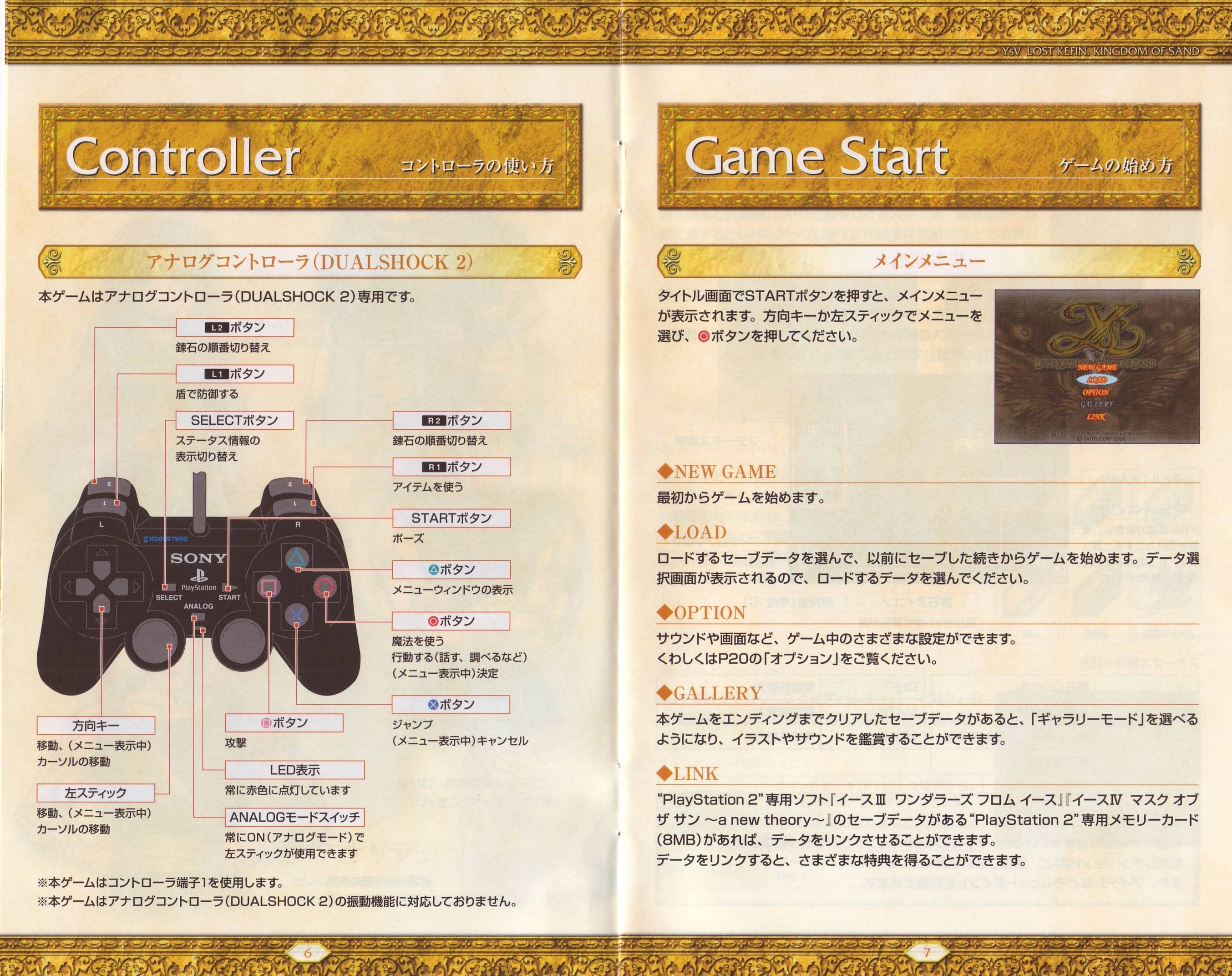 HOME > イース5 ロスト ケフィン キングダム オブ ザ サンド Lost Kefin, Kingdom of Sand攻略TOP > 取扱説明書