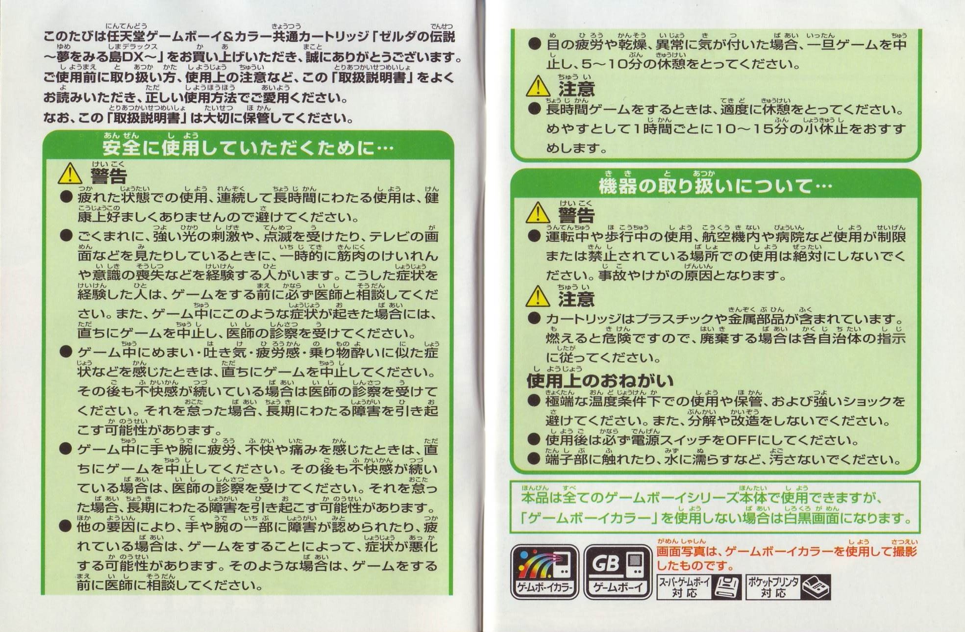HOME > ゼルダの伝説 夢をみる島 攻略TOP > 取扱説明書
