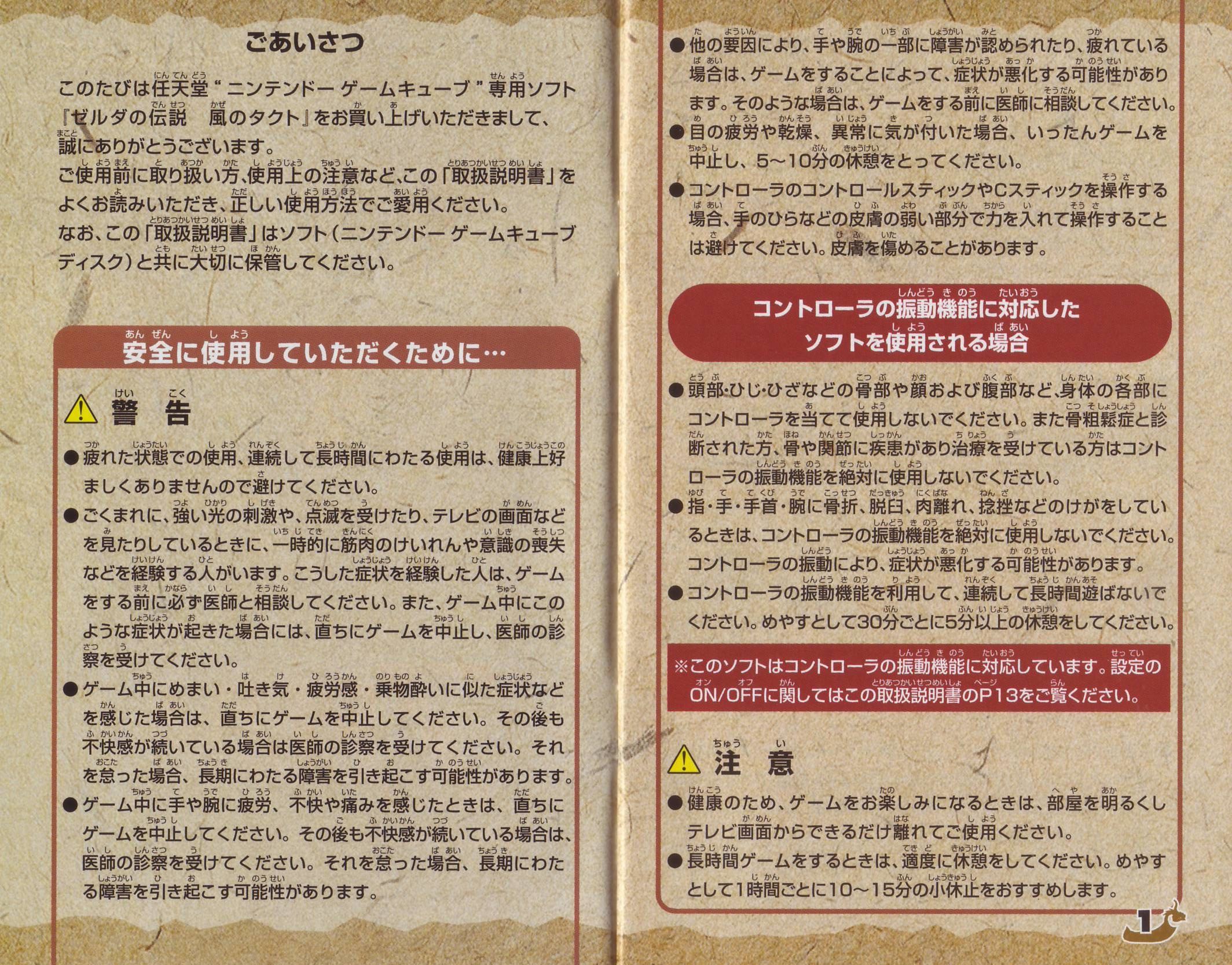 HOME > ゼルダの伝説 風のタクト攻略TOP > 取扱説明書