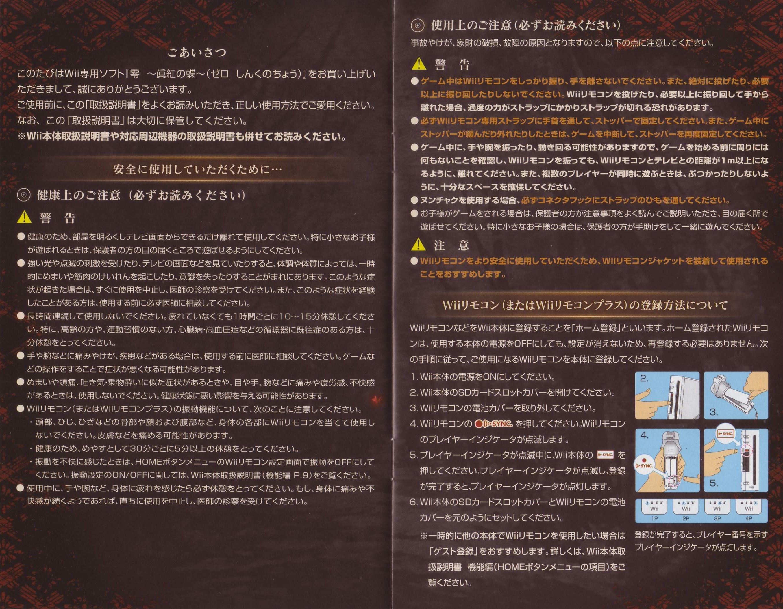 HOME > 零 眞紅の蝶攻略TOP > 取扱説明書